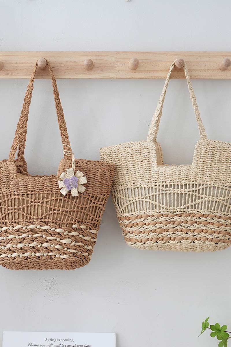 Large Capacity Tote Bag Lined Hollow Wave Beach Women's Bag