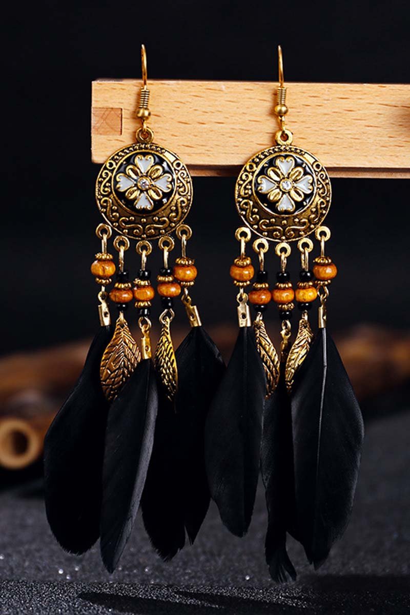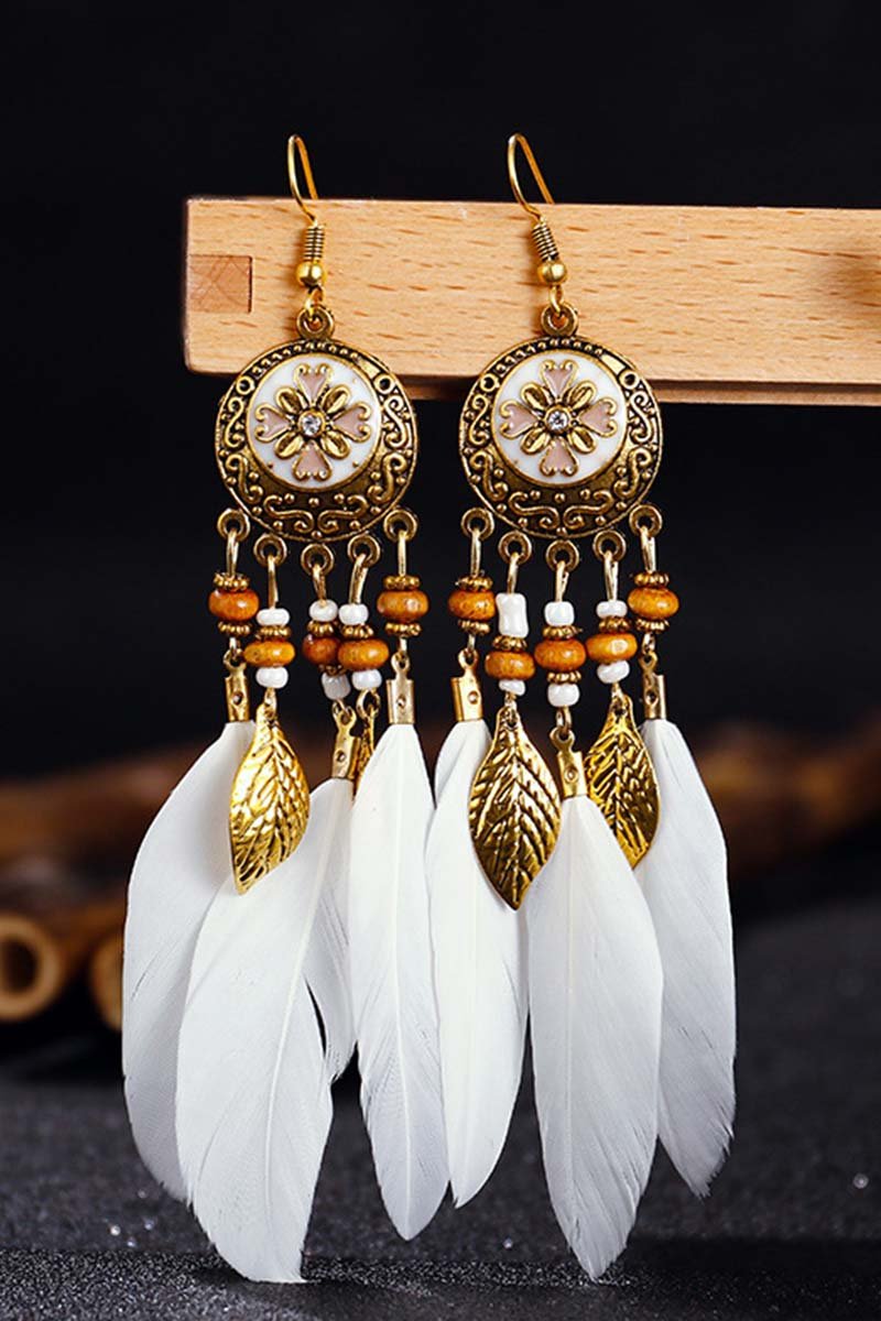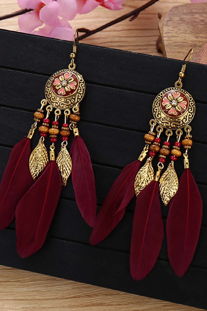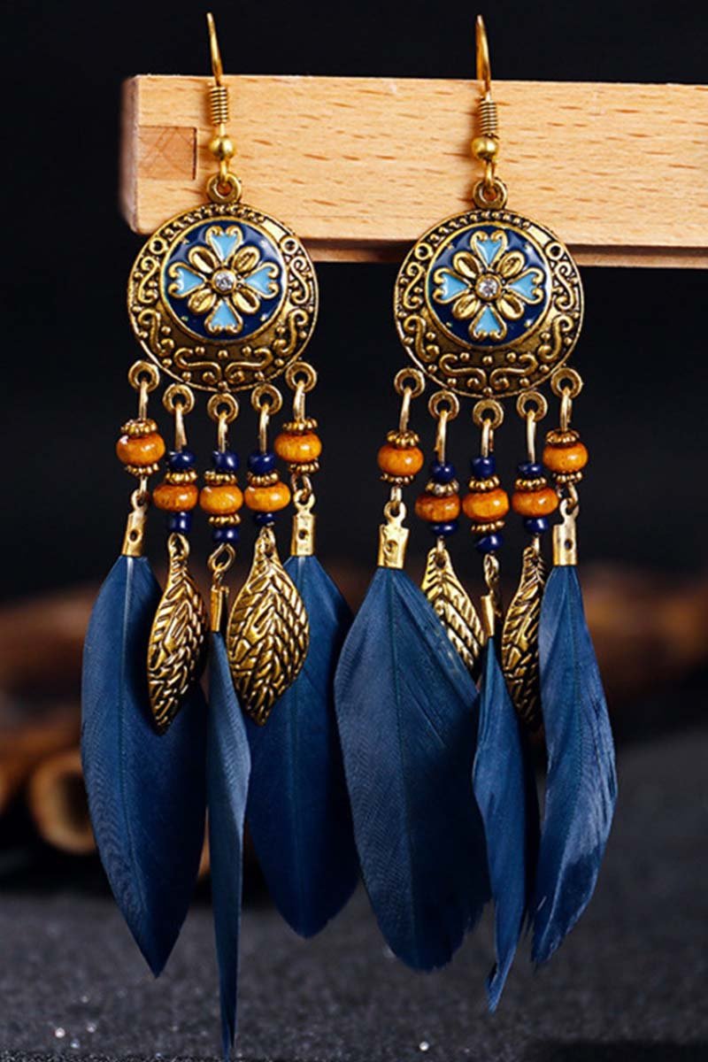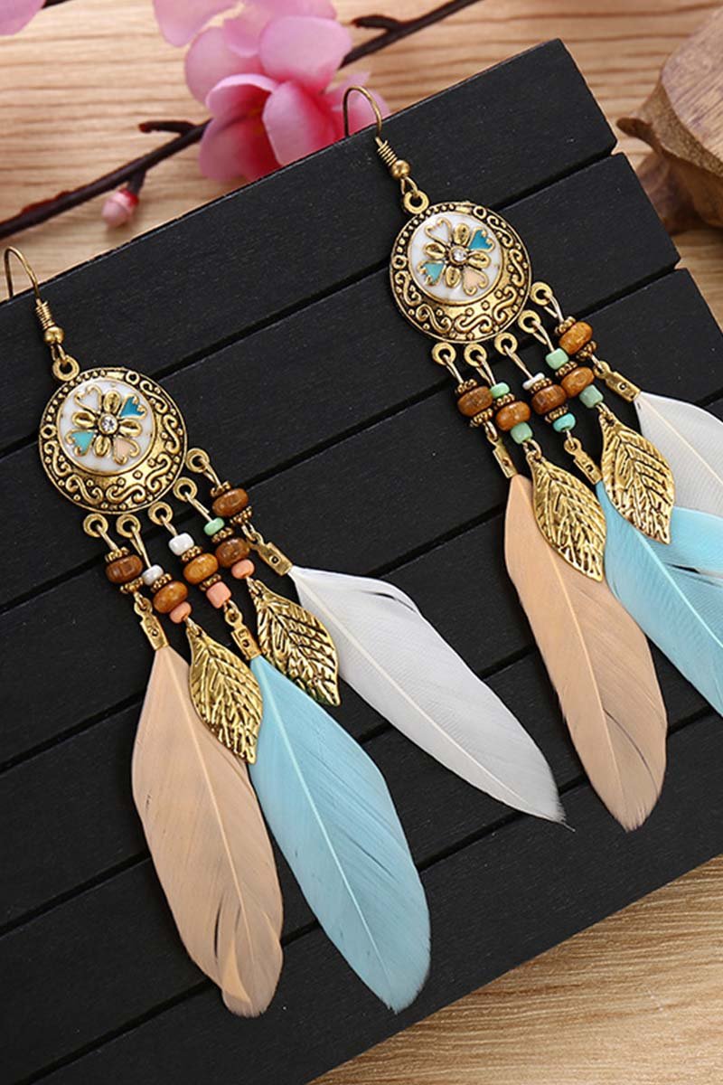 • Retro Earrings Bohemian Resort Style Feather Tassel Earrings
