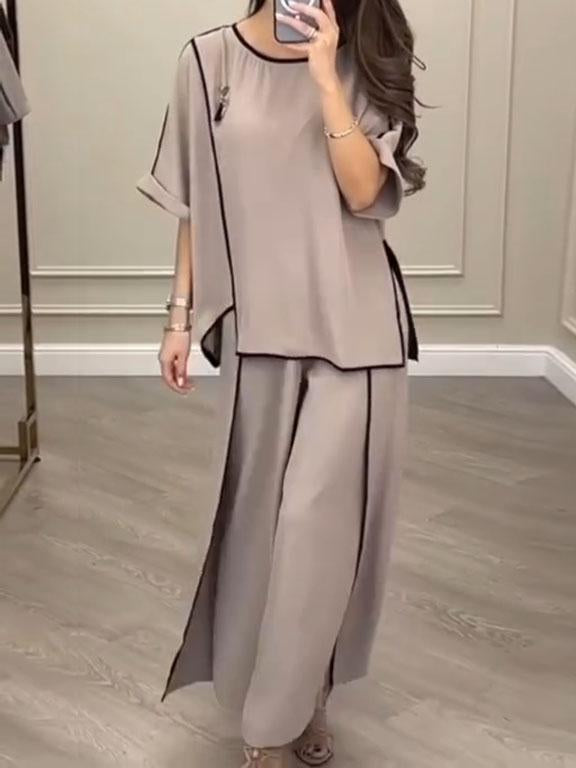 Irregular Contrasting Color Cotton and Linen Two-piece Set