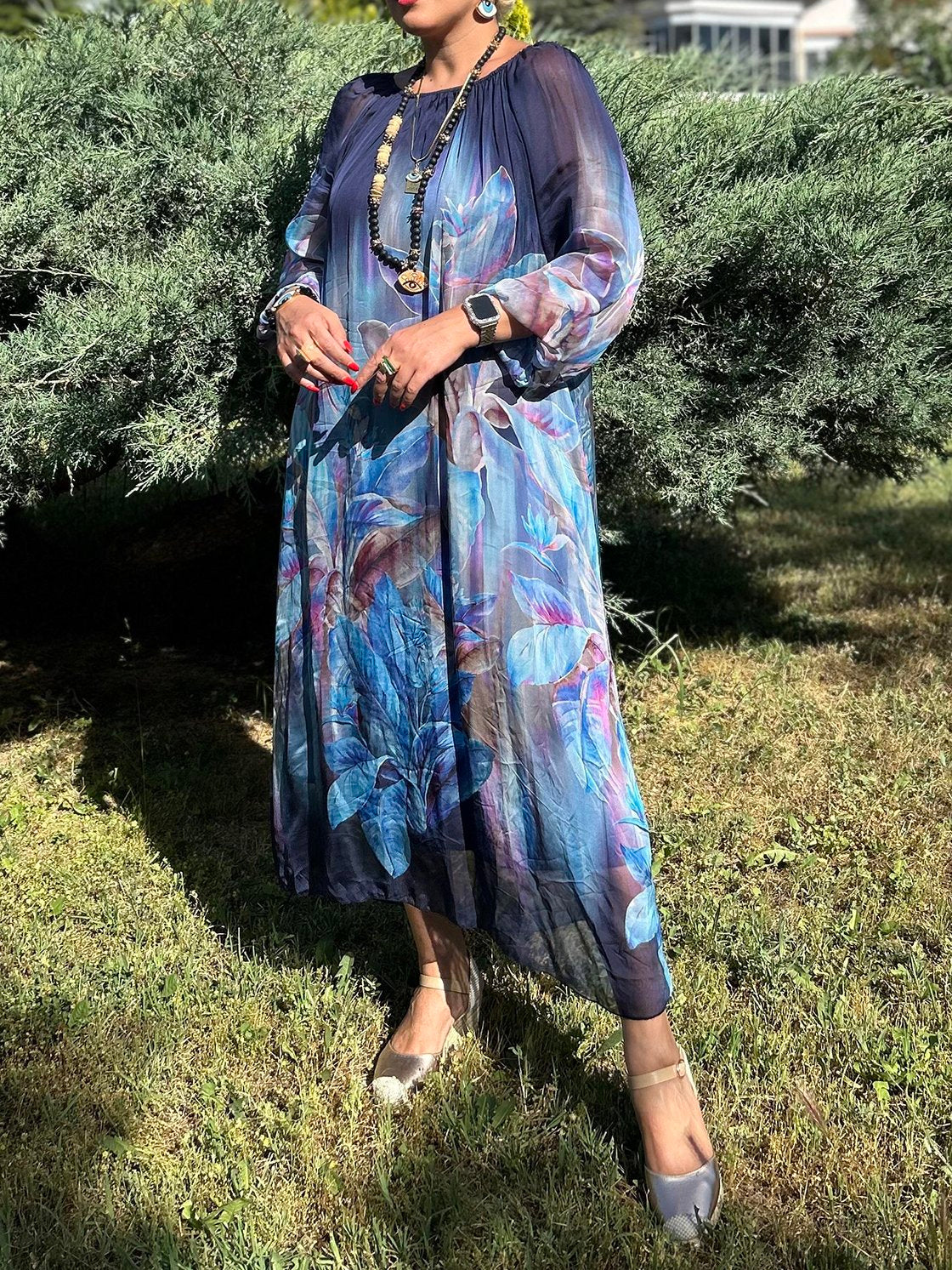 Women's Casual Floral Print Off Shoulder Chiffon Dress