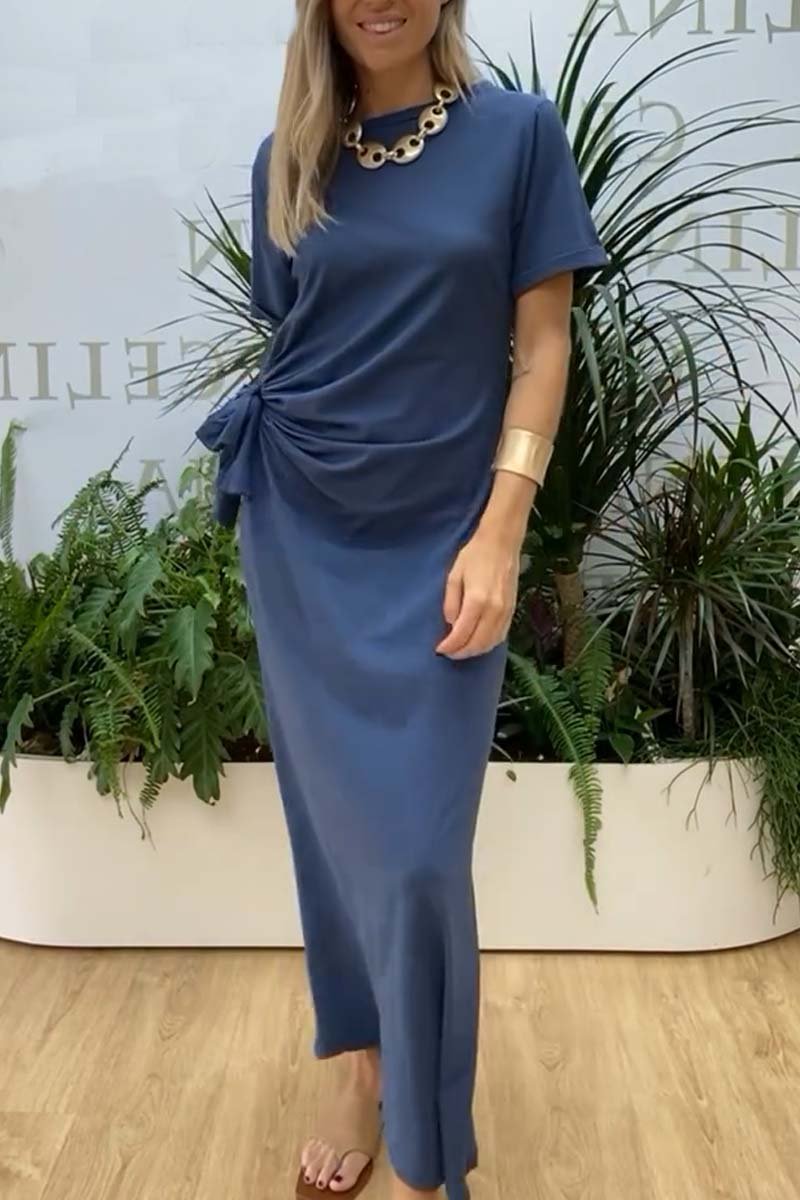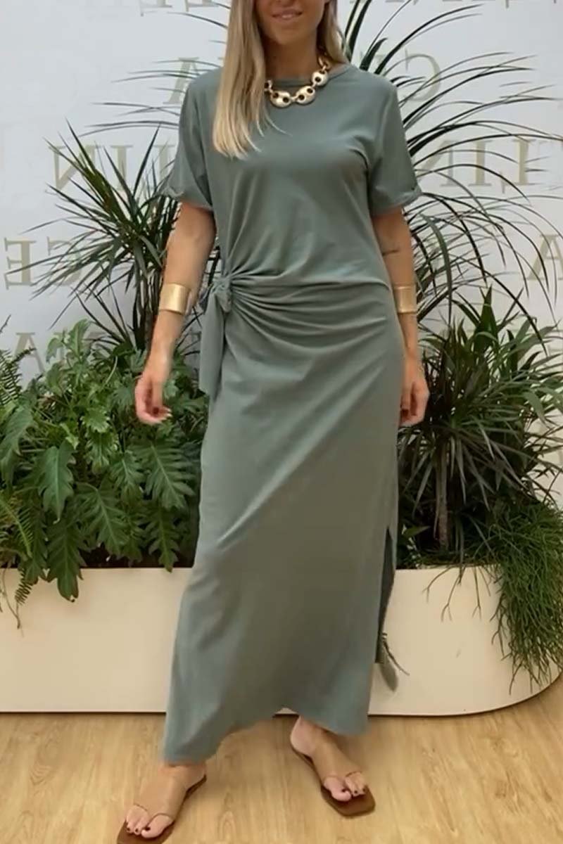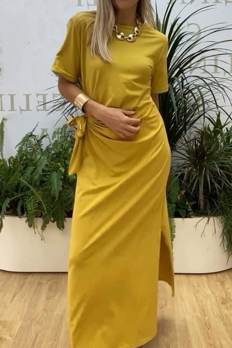 • Women's Casual Waist Tie Long T-Shirt Dress