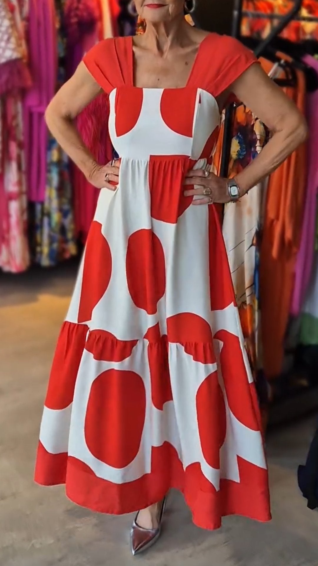 • Women's Square Collar Sleeveless Polka Dot Print Dress