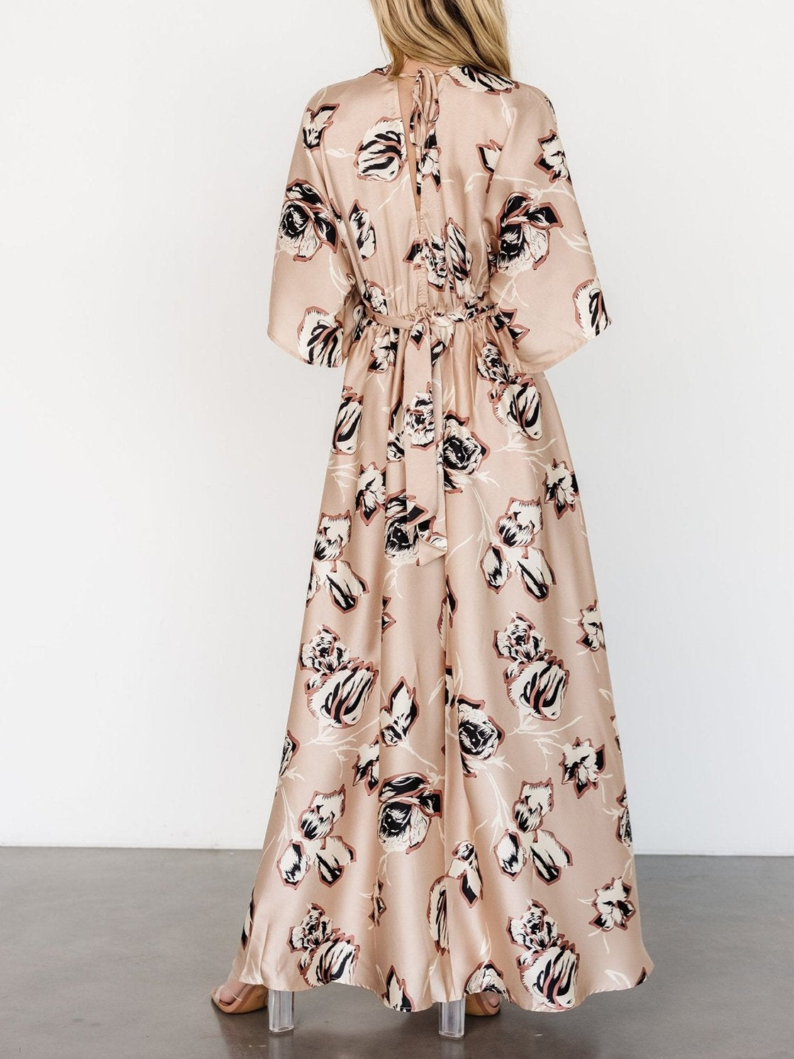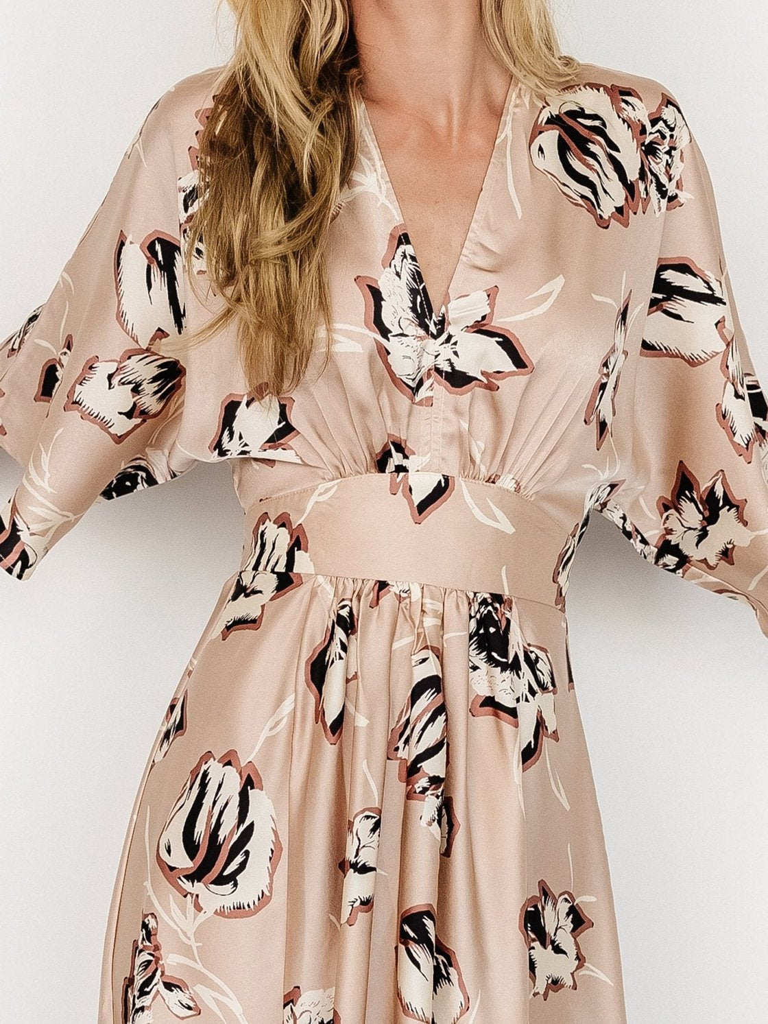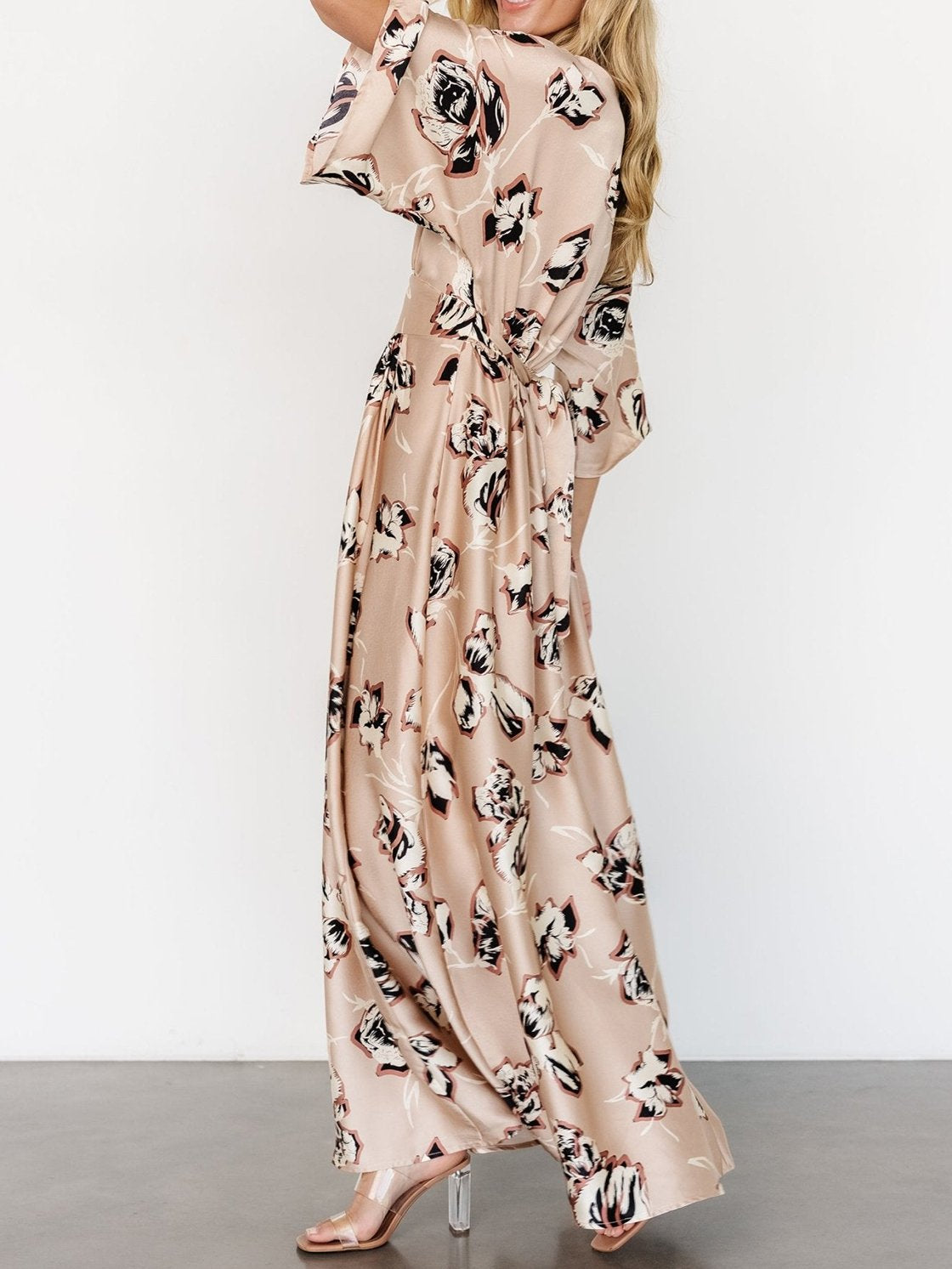 Women's Elegant Flower Print V-Neck Mid-Sleeve Dress