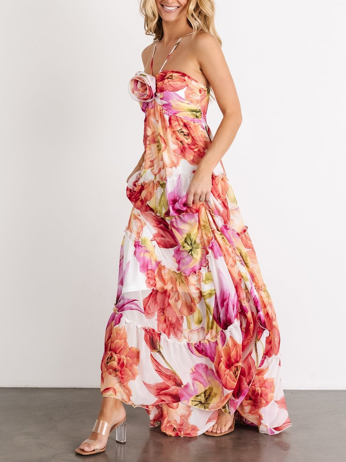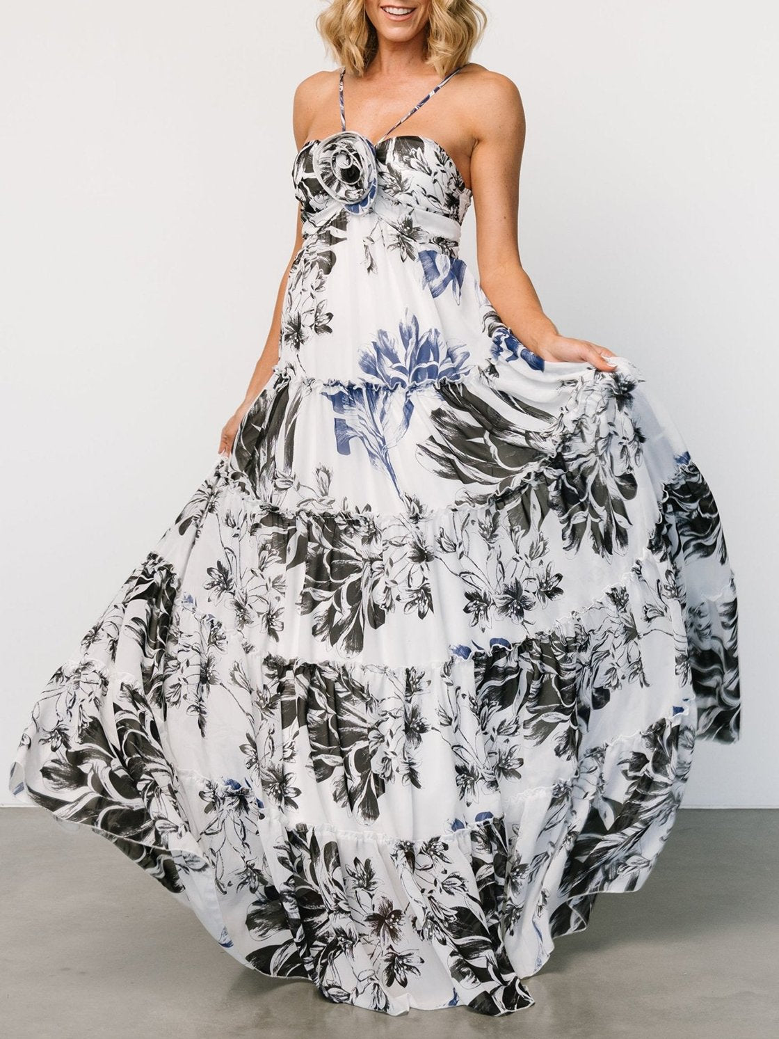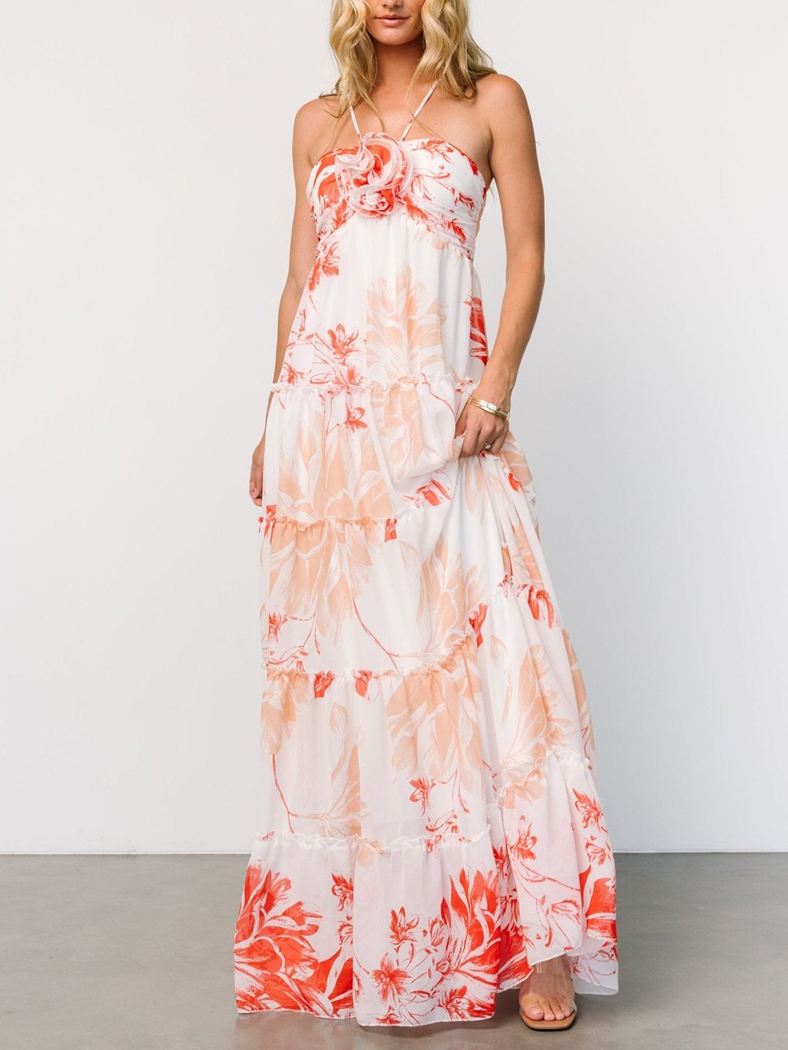 Women's Holiday Three-dimensional Flower Halter Neck Strappy Dress