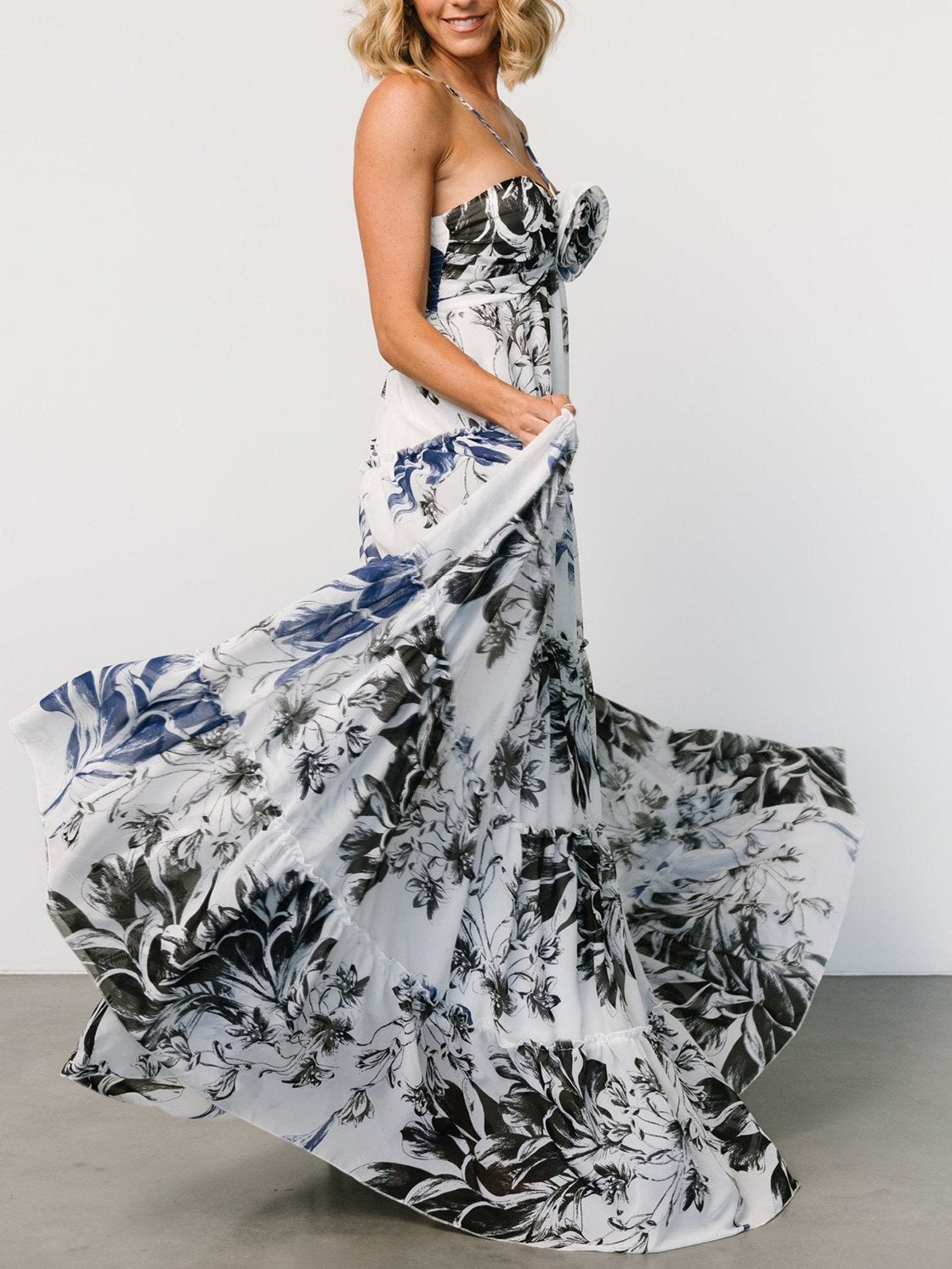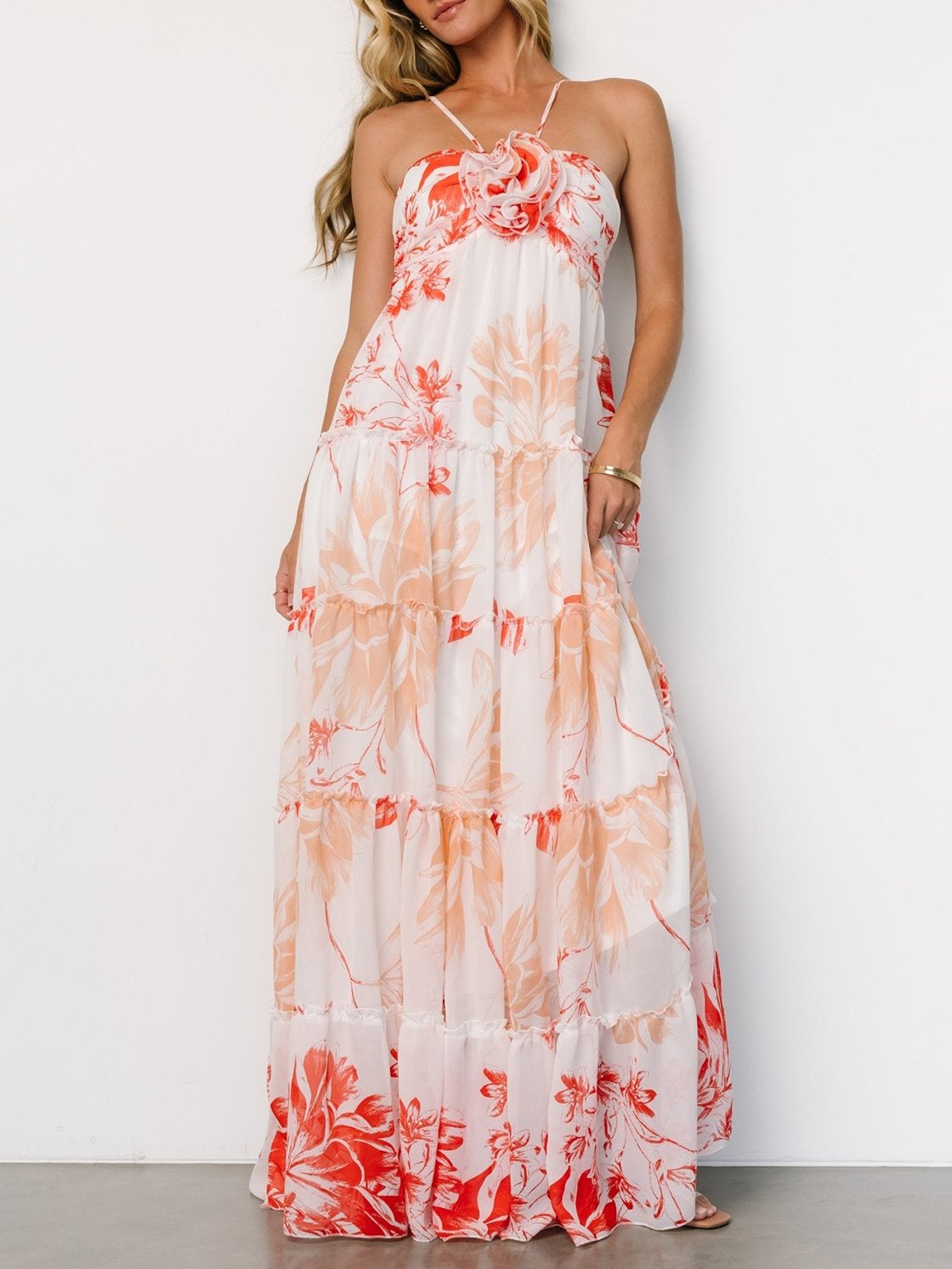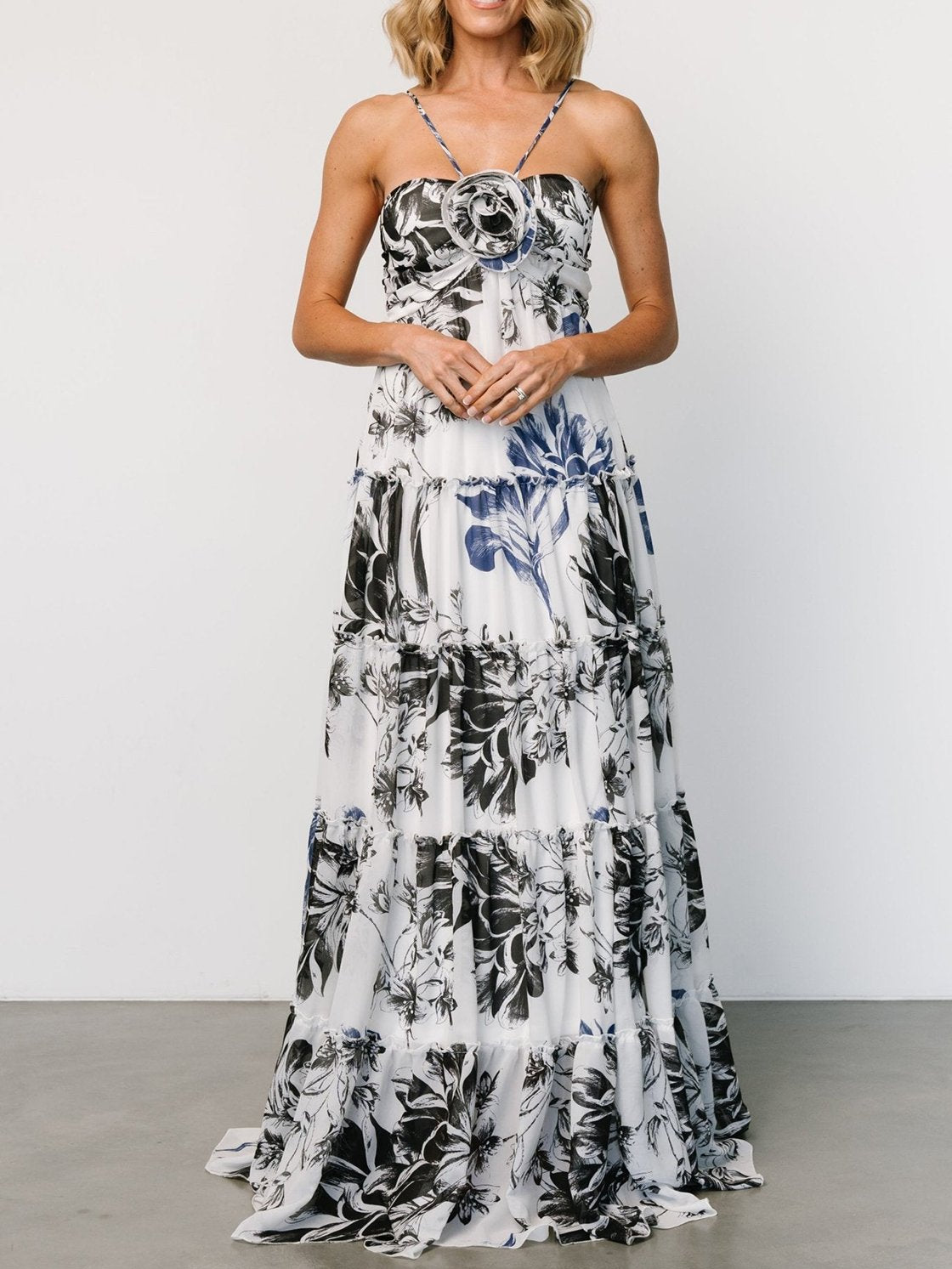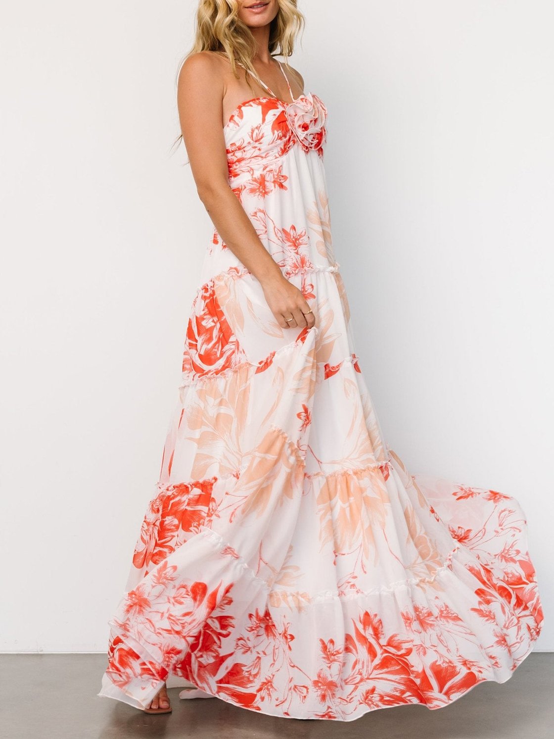 Women's Holiday Three-dimensional Flower Halter Neck Strappy Dress