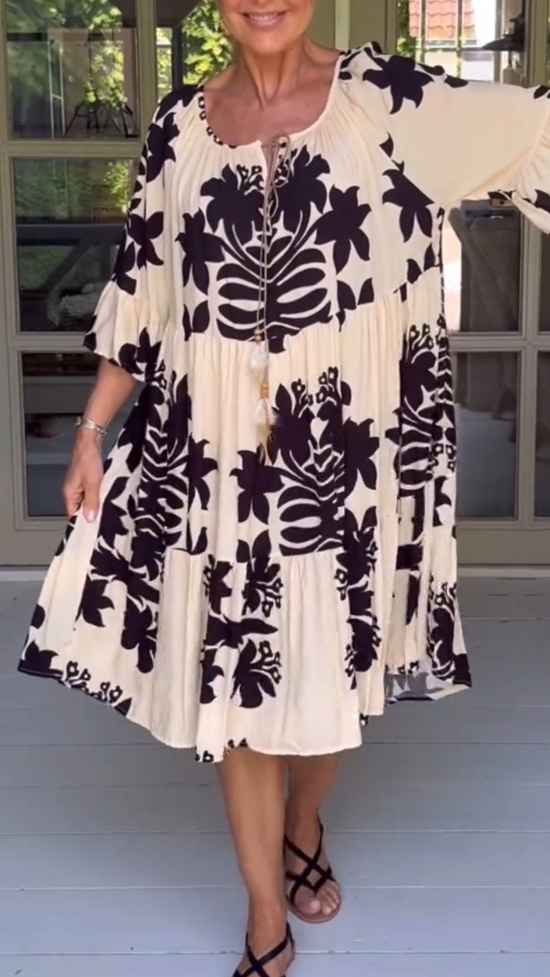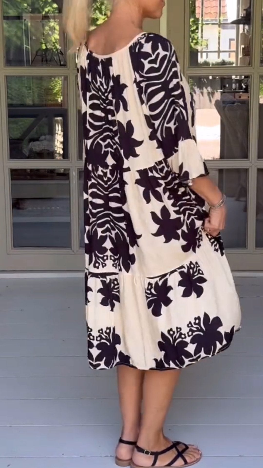 Women's Printed Loose Square Neck Short-sleeved Dress