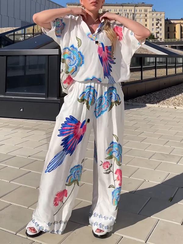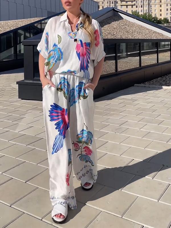 Women's Lapel Printed Satin Two-piece Suit