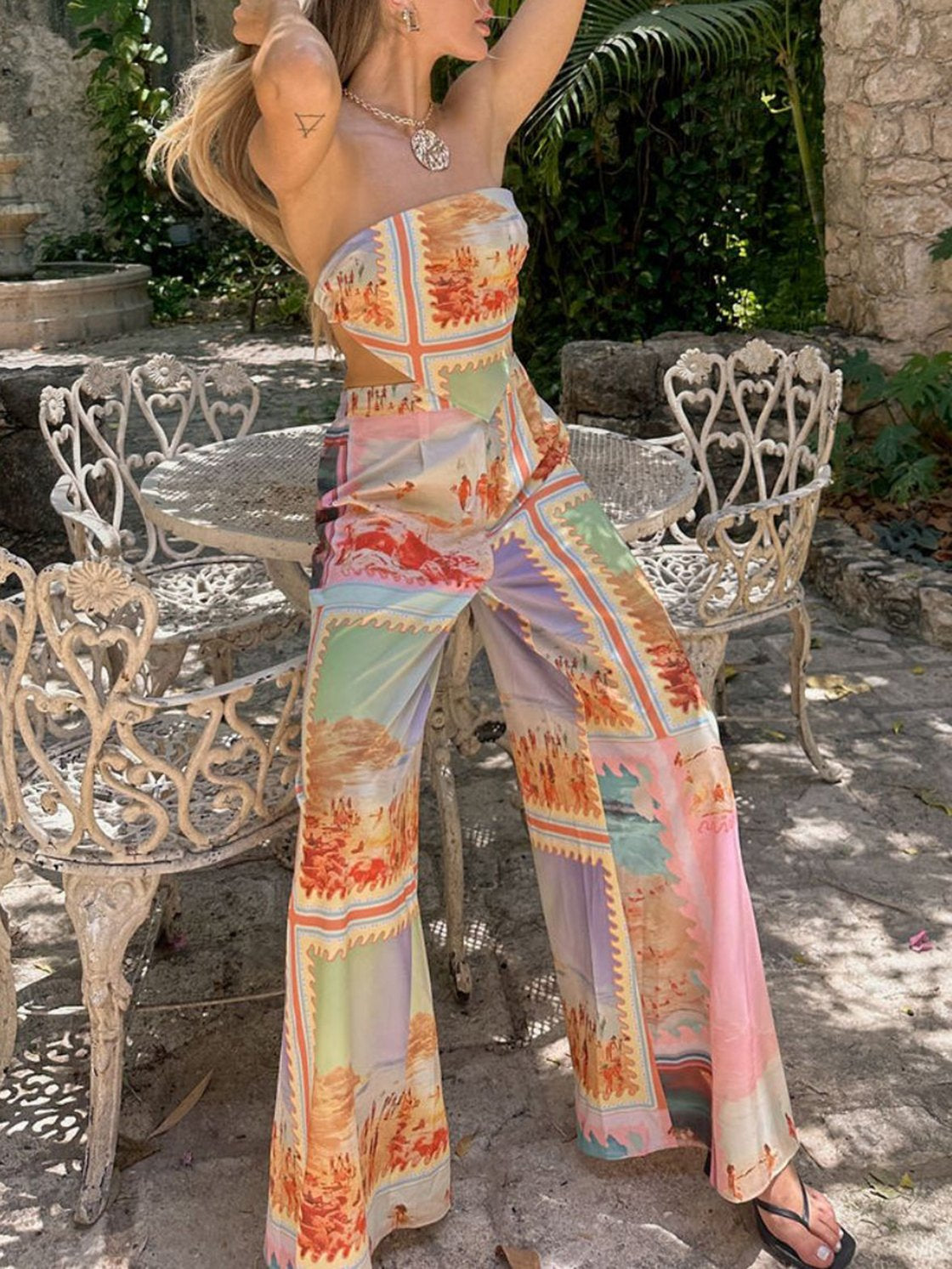 Women's Resort Print Lace-up Pants Suit
