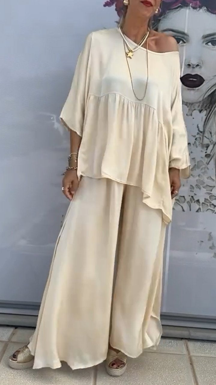 Women's Comfortable Off-The-Shoulder Top And Pants Two-Piece Set