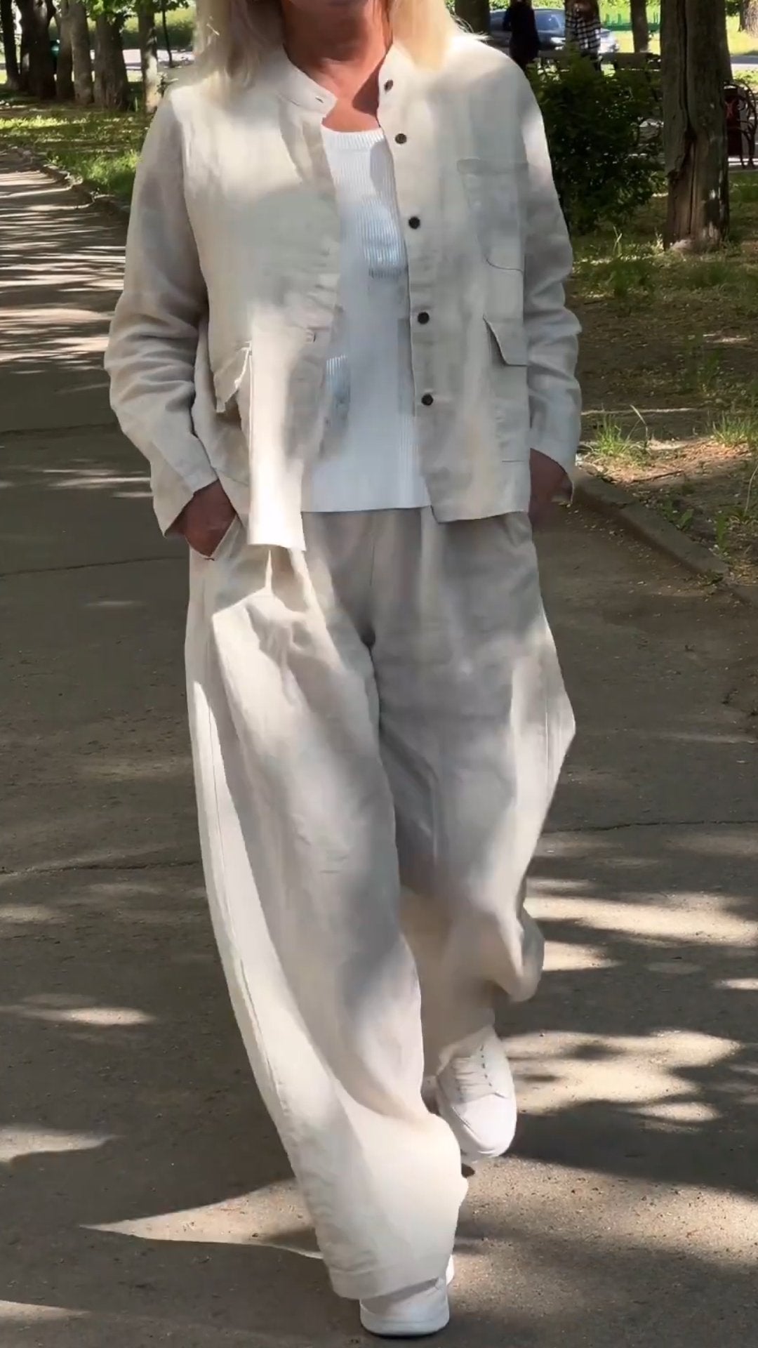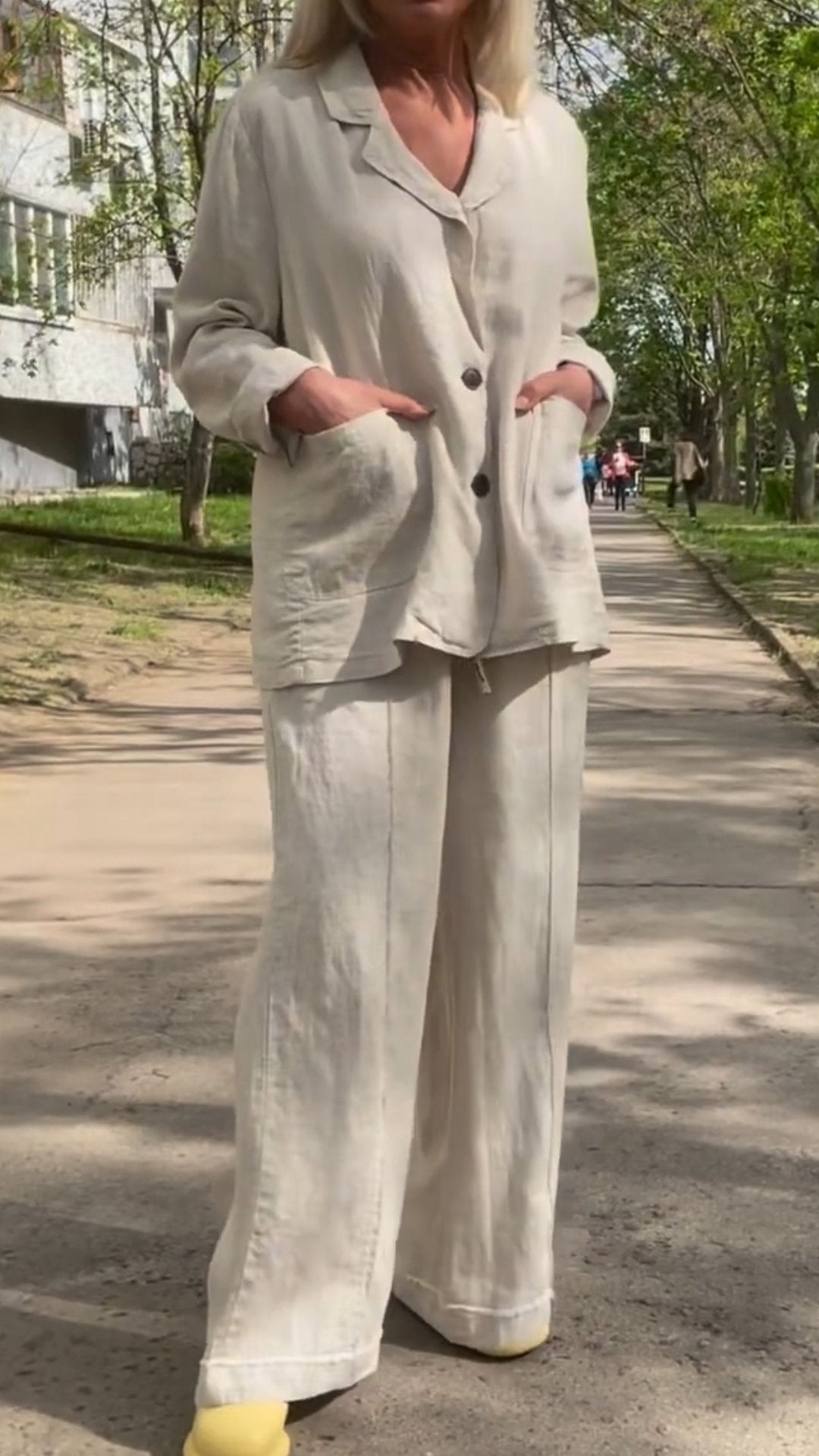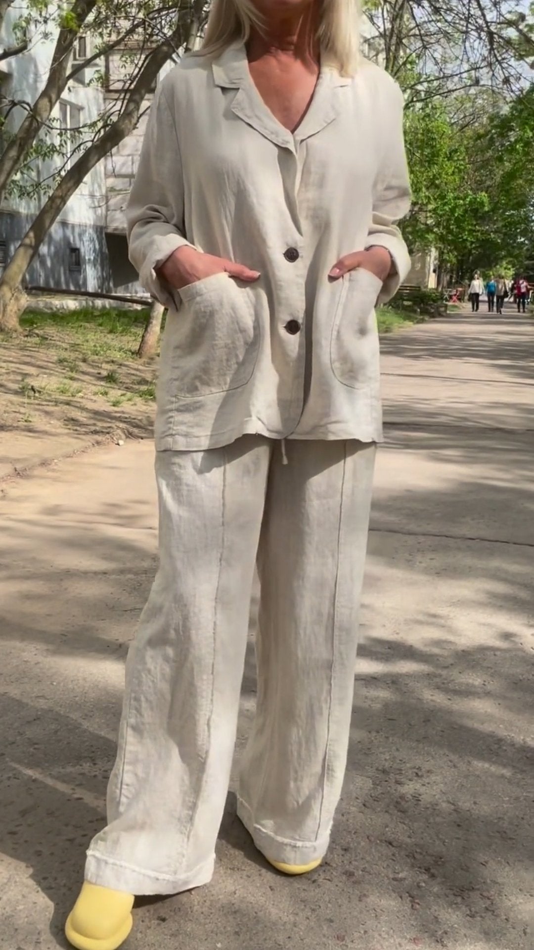 Women's Lapel Long-sleeved Cotton and Linen Casual Suit