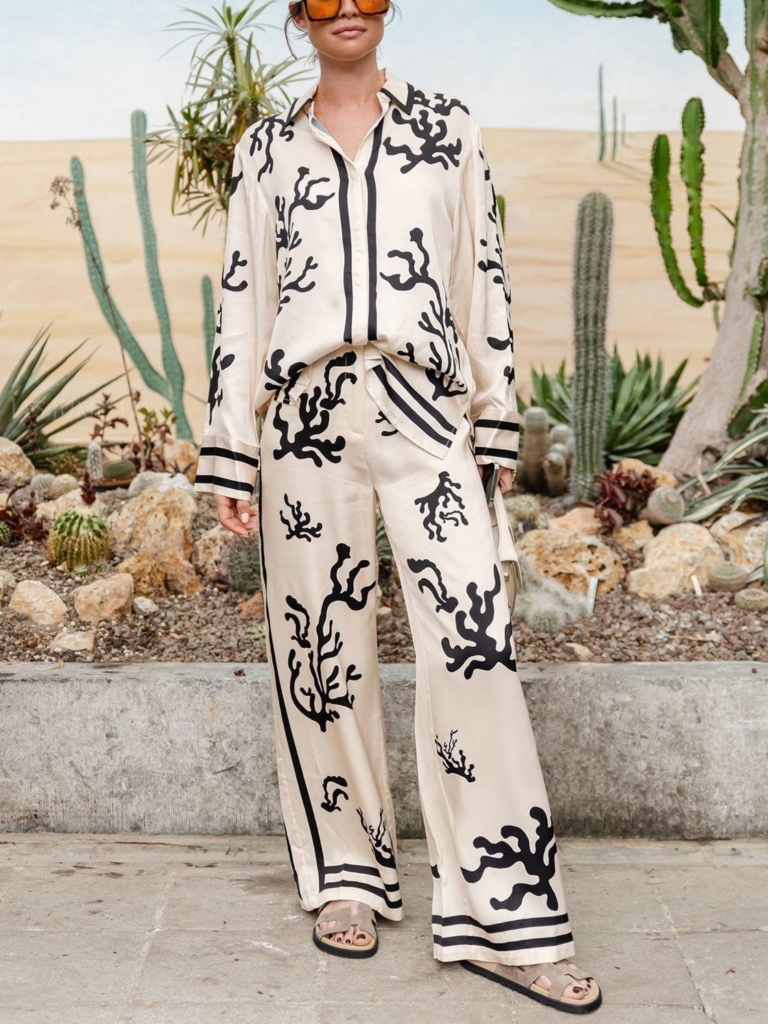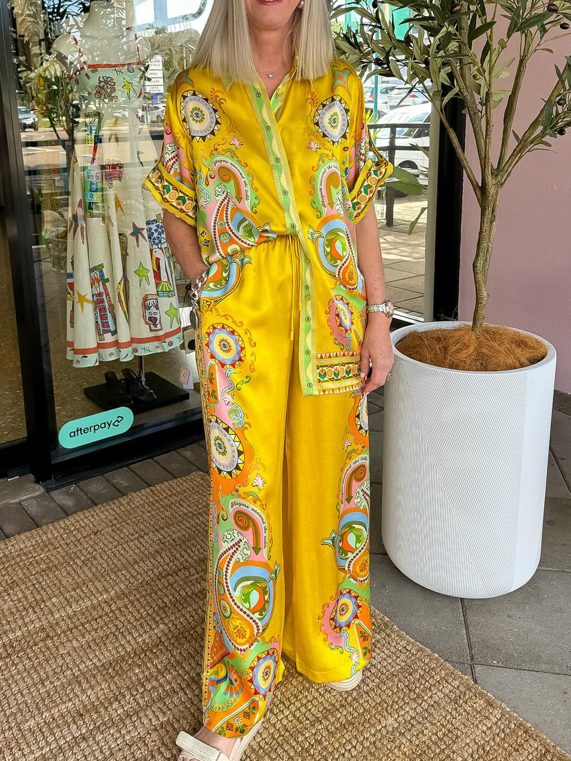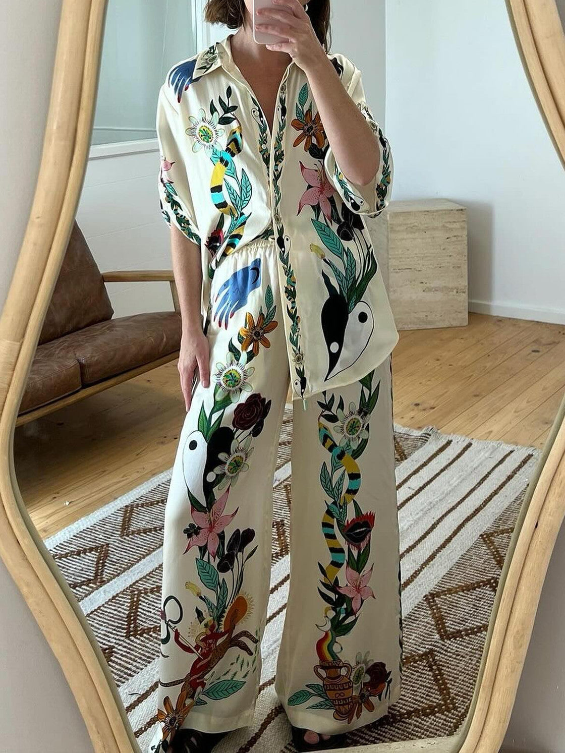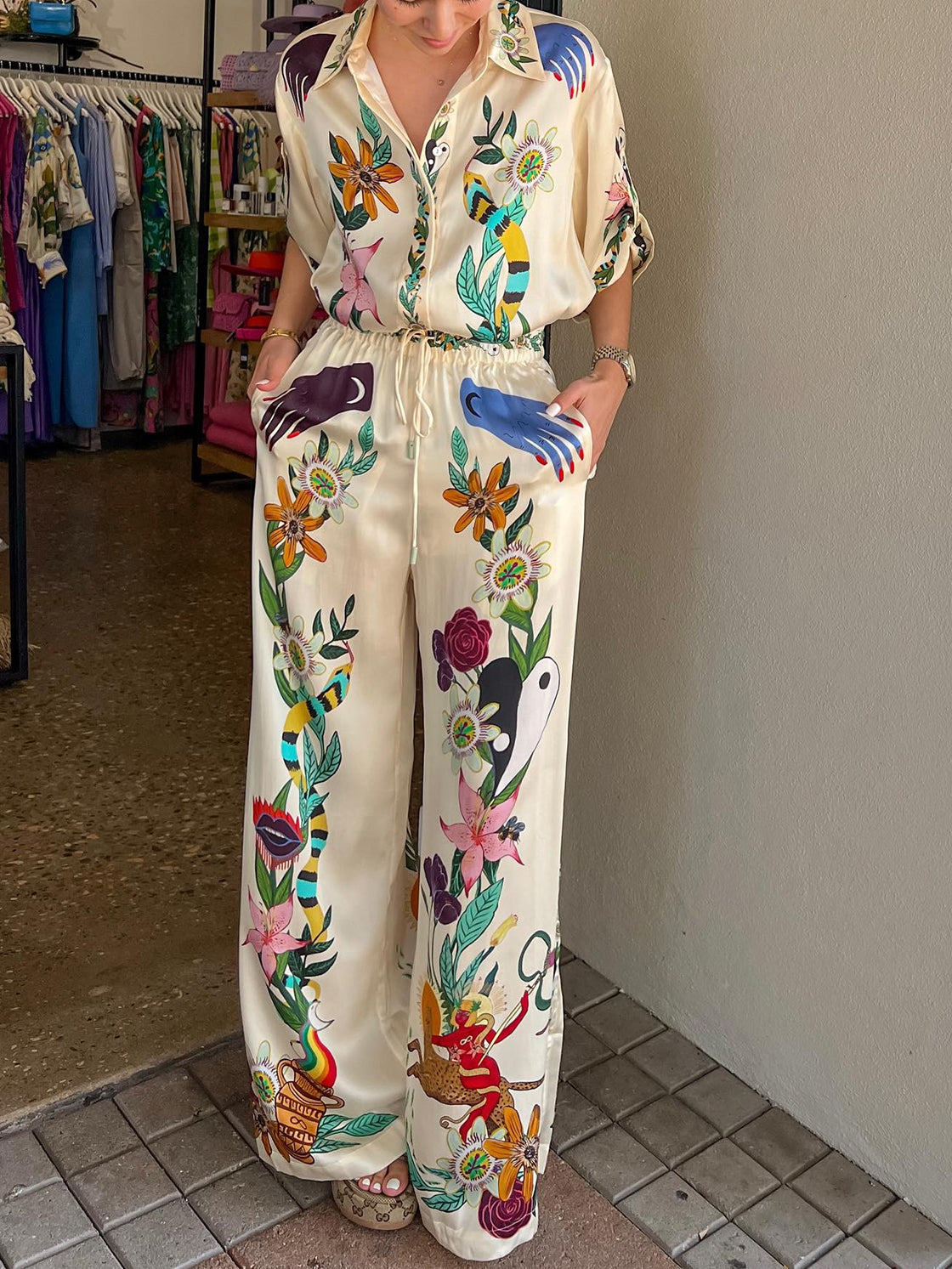 Women's Resort Printed Satin Short Sleeve Pants Set