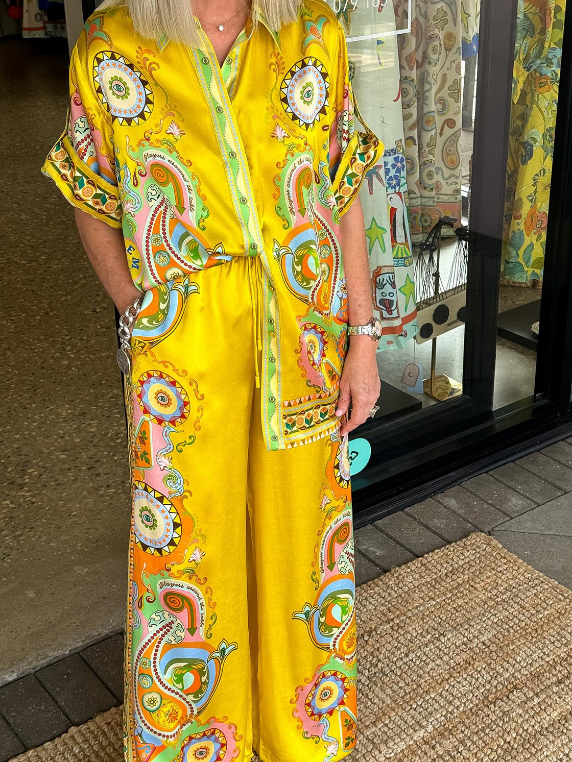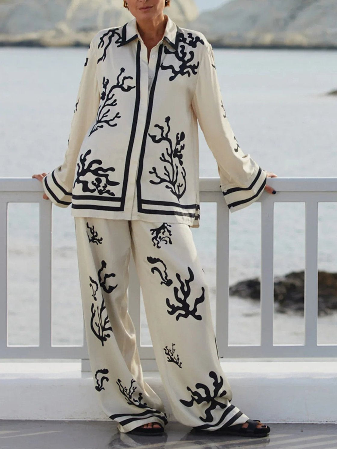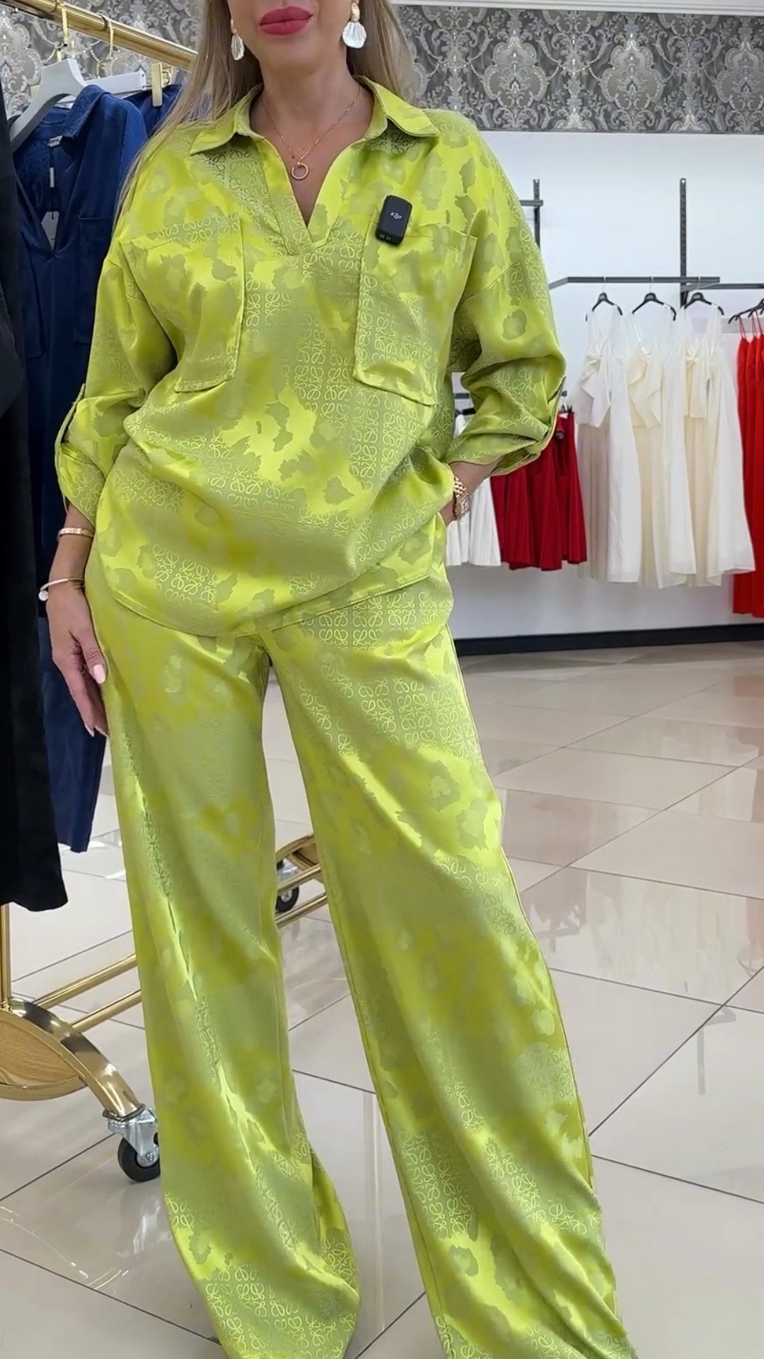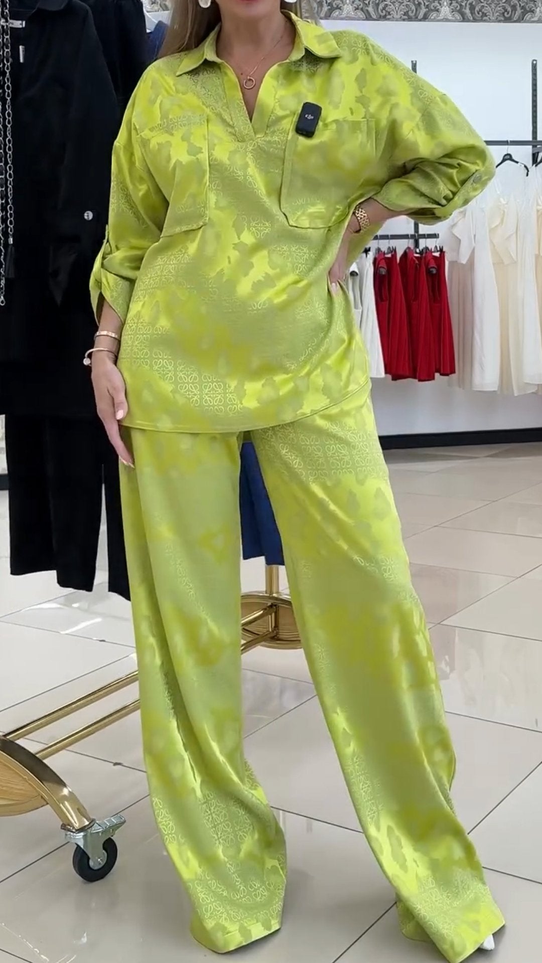 Women's Resort Printed Satin Short Sleeve Pants Set