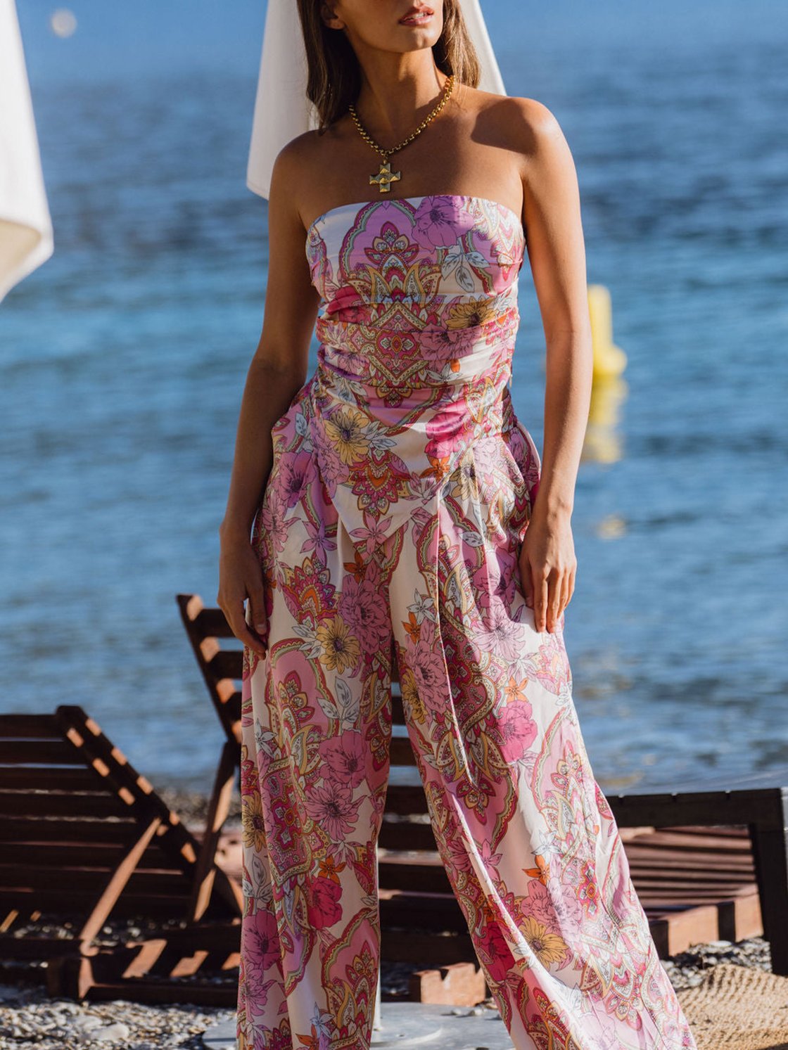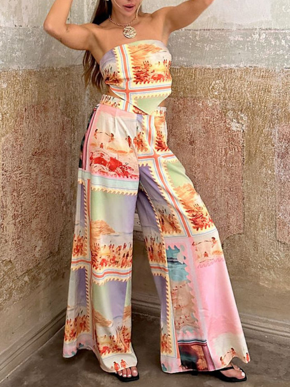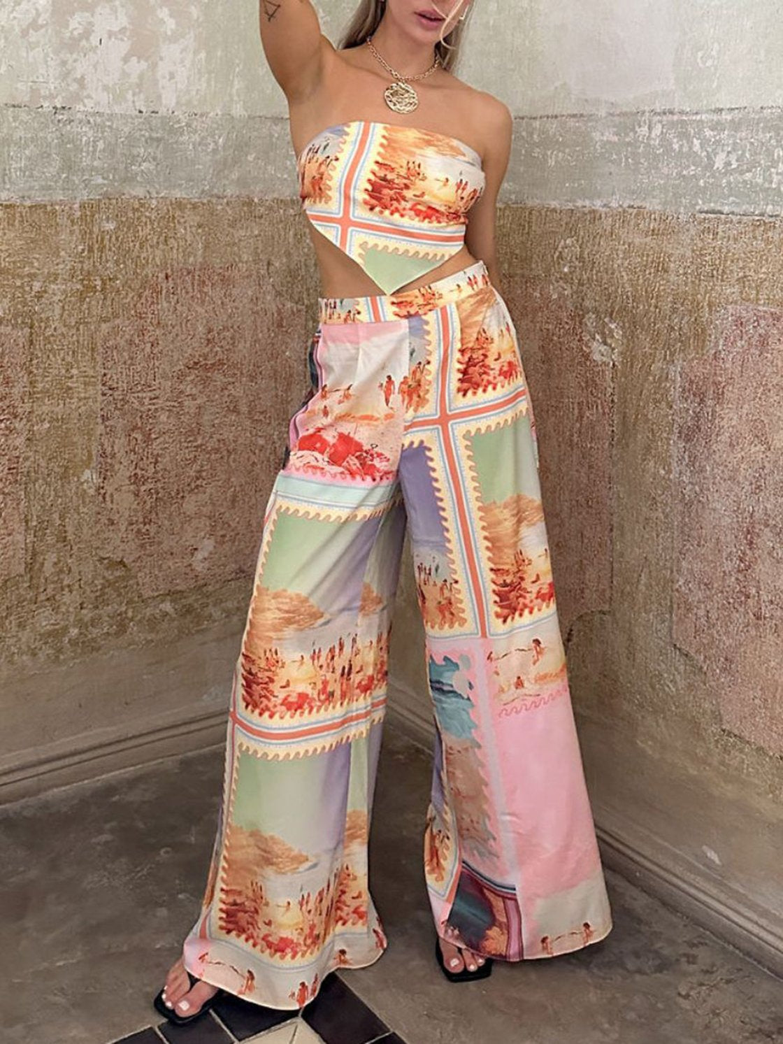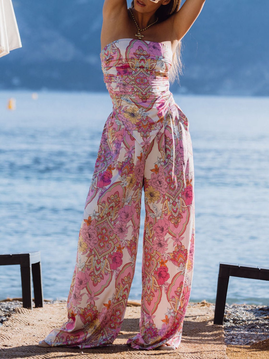 Women's Resort Contrast Color Polka Dot Floral Print Pants Suit