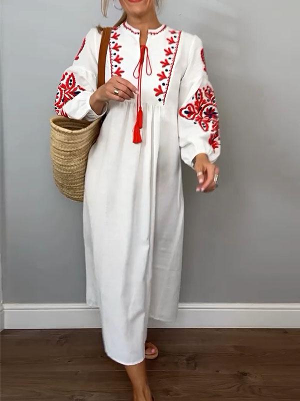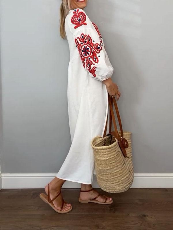 Women's casual V-neck cotton and linen long-sleeved jumpsuit