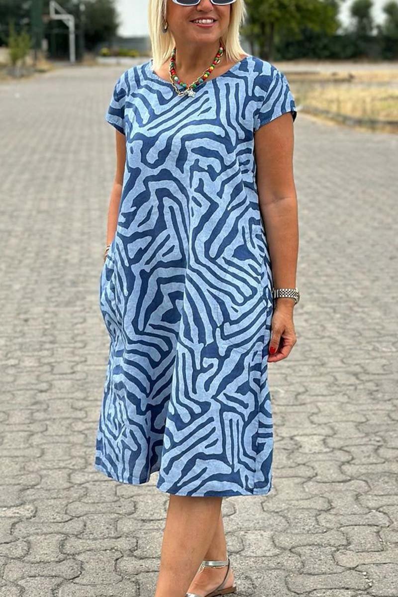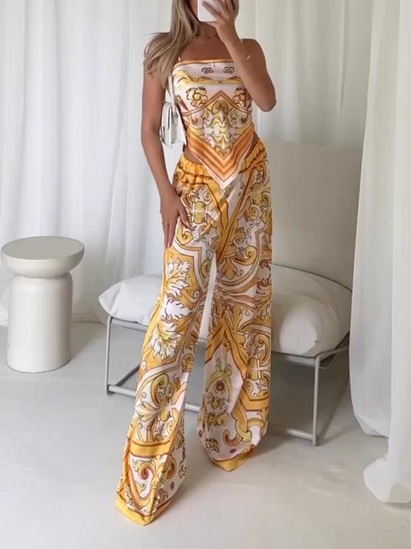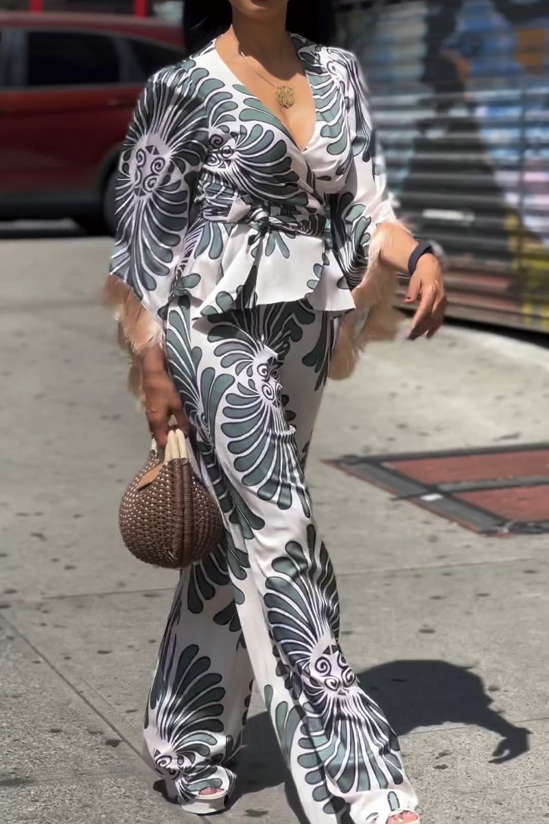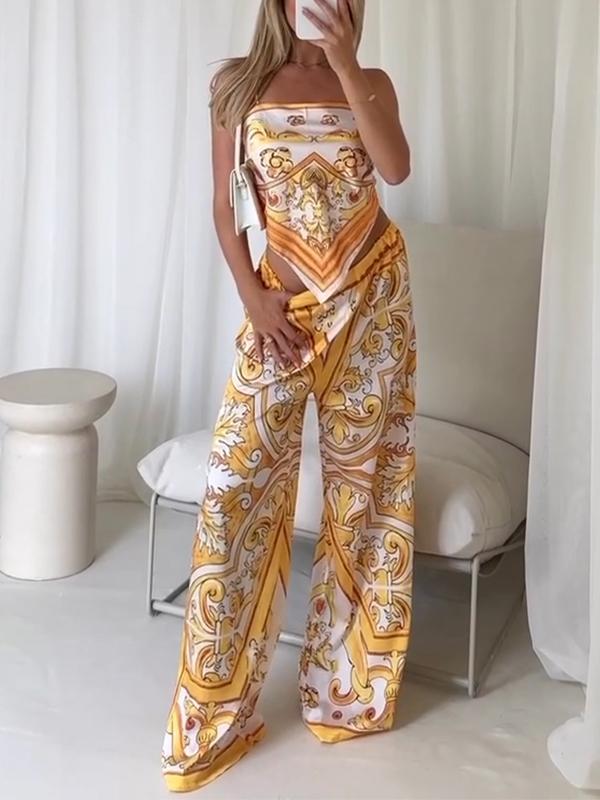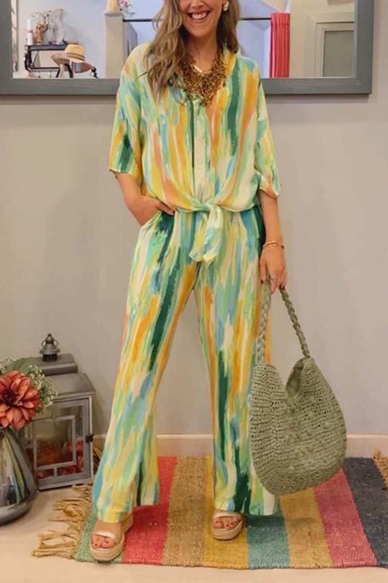 Women's Two-piece U-neck Short Sleeve and Printed Trousers