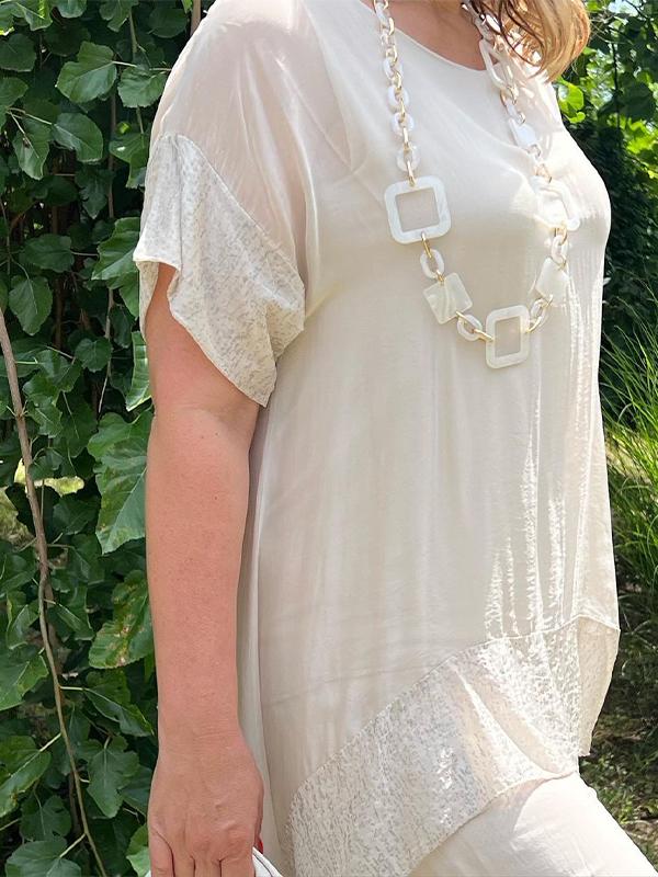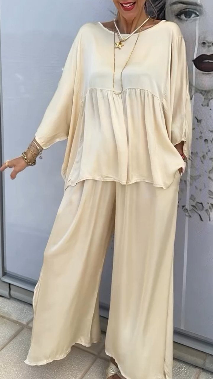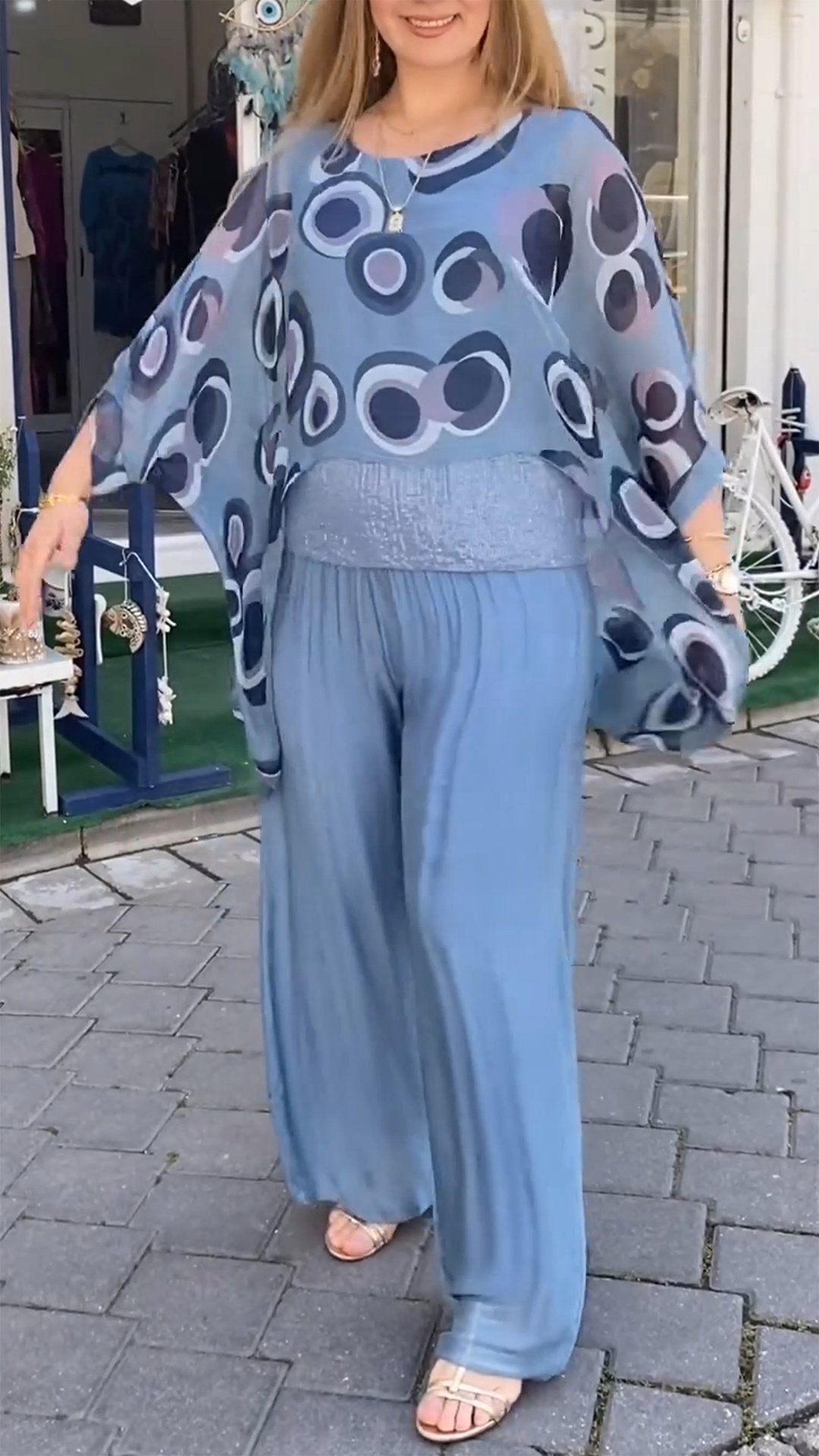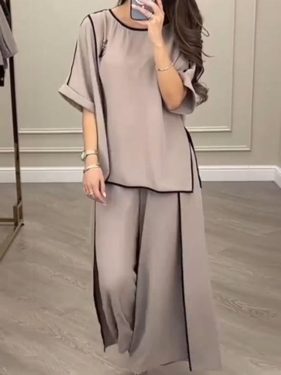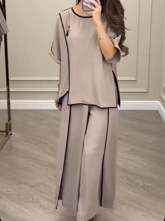 Women's Round Neck Short Sleeve Chiffon Two Piece Suit