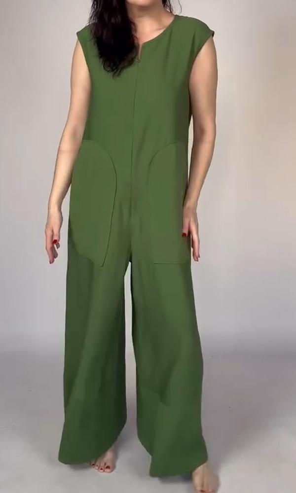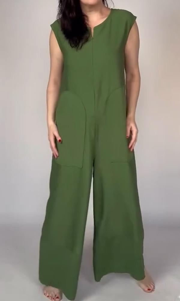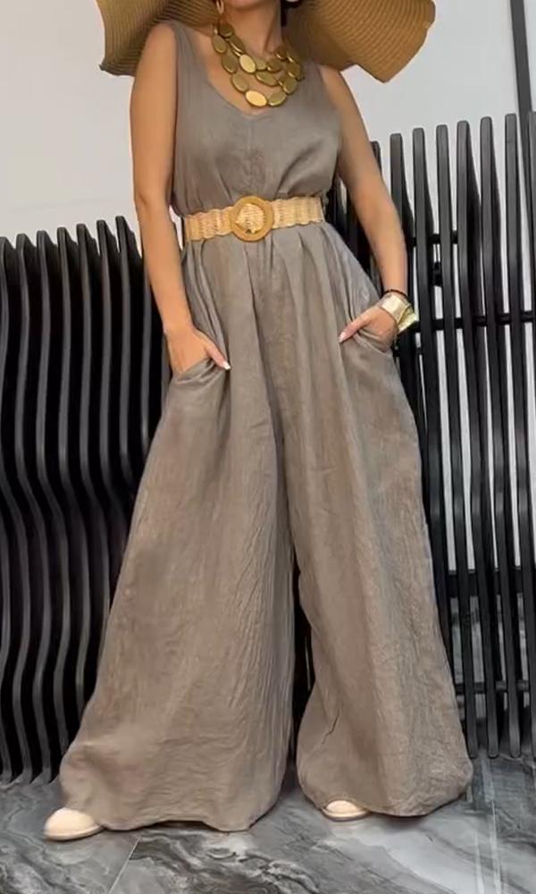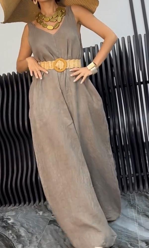 Women's Comfortable V-Neck Cotton And Linen Jumpsuit
