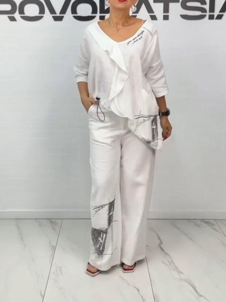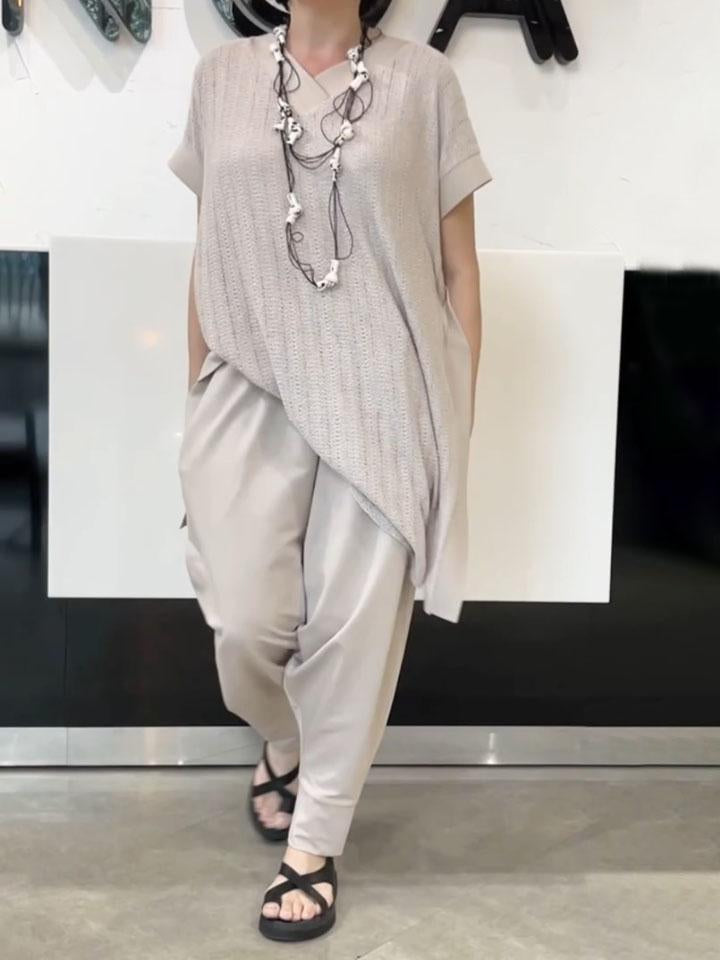 Women's Irregular Cotton and Linen Two-piece Casual Suit