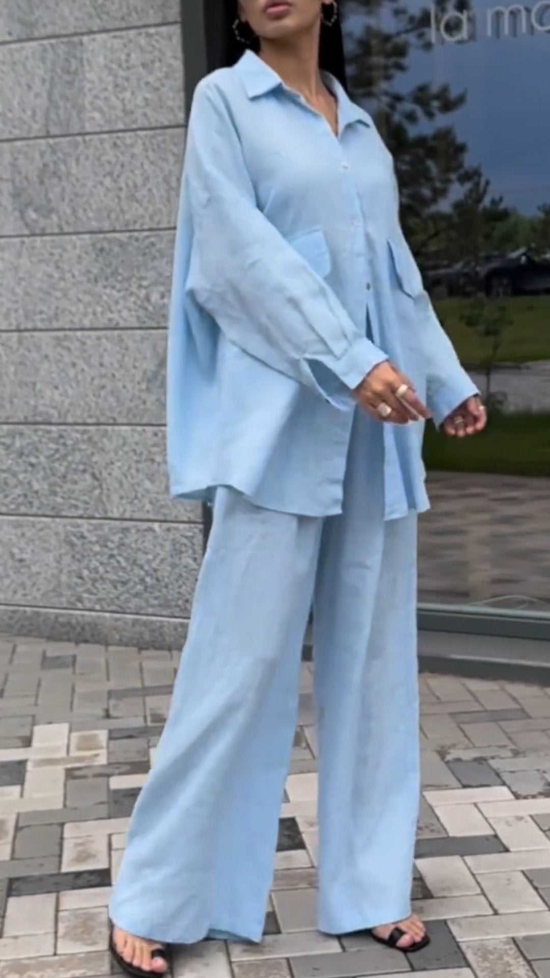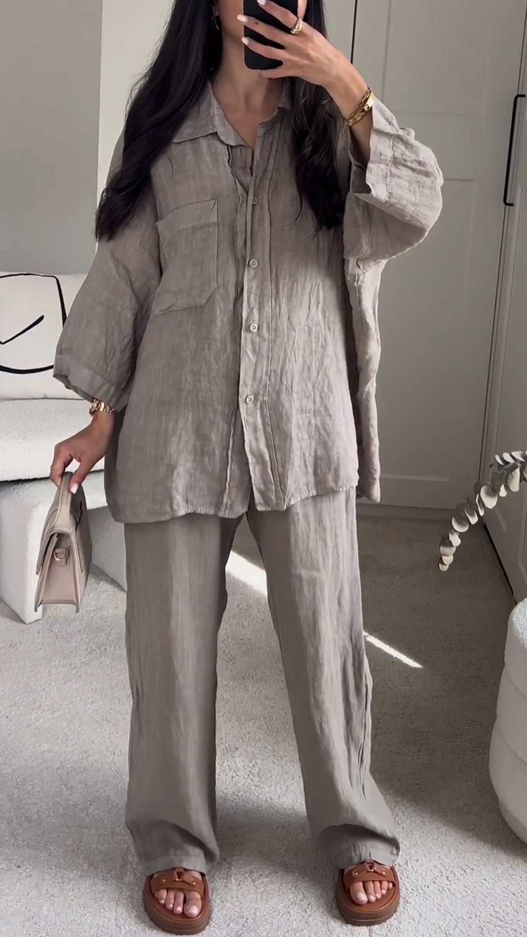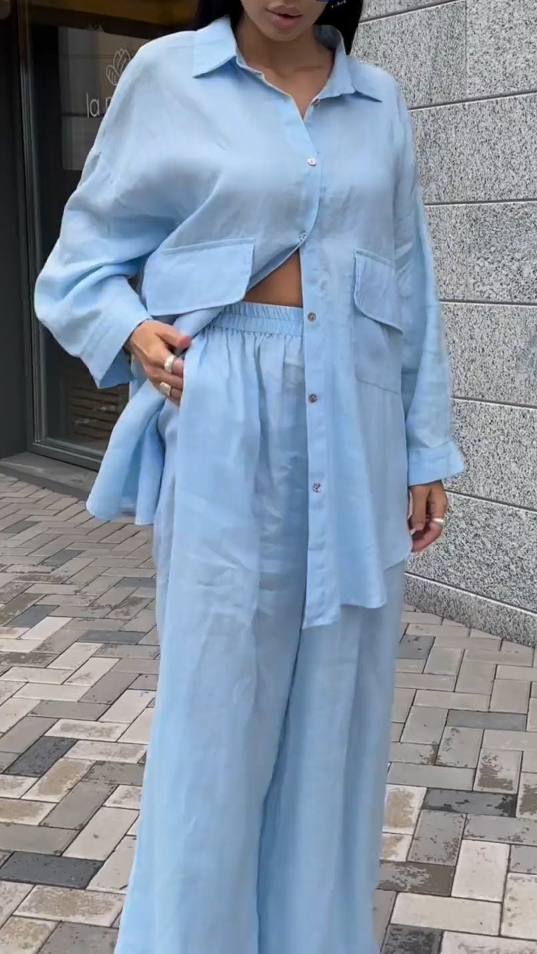 Women's Linen Back Cut-Out Shirt And Trousers Two-Piece Set