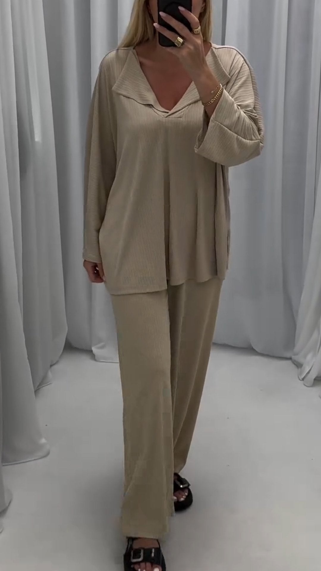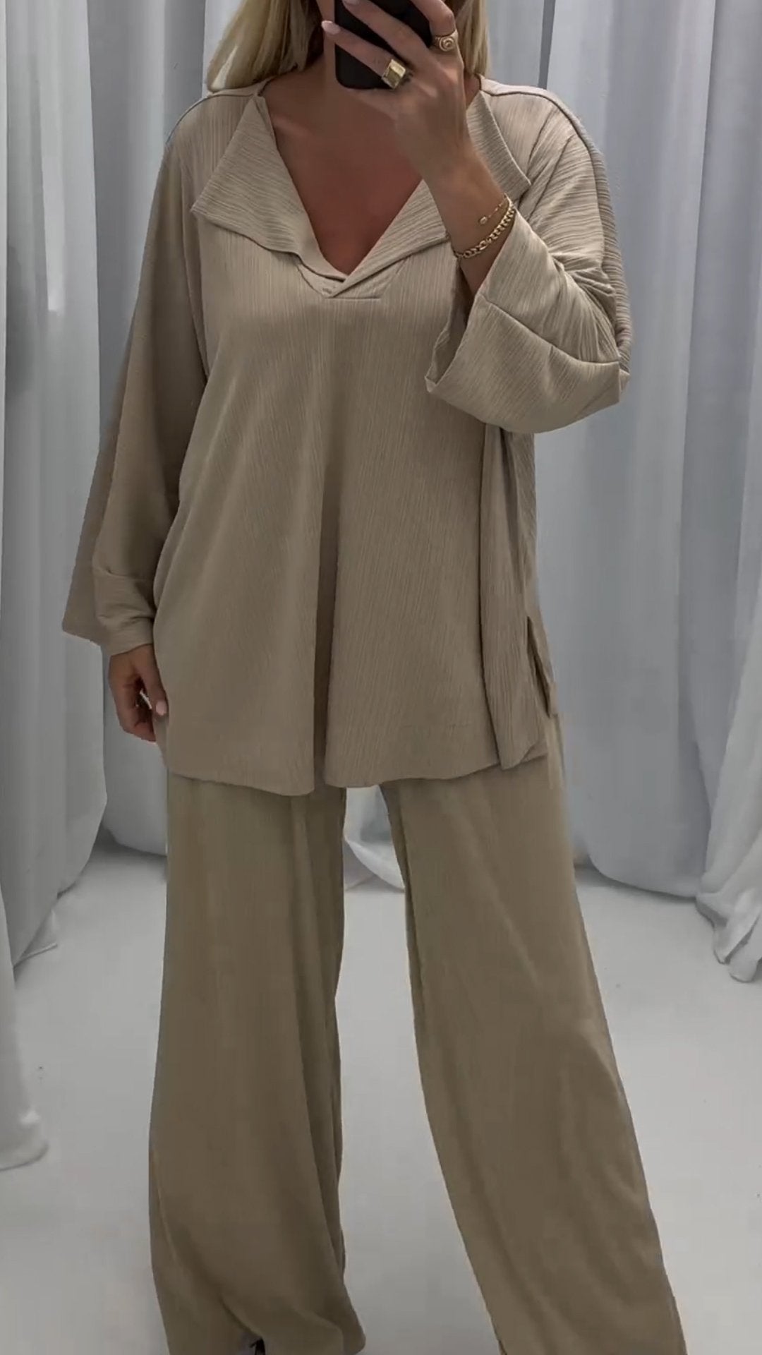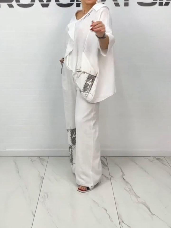 Women's Linen Back Cut-Out Shirt And Trousers Two-Piece Set