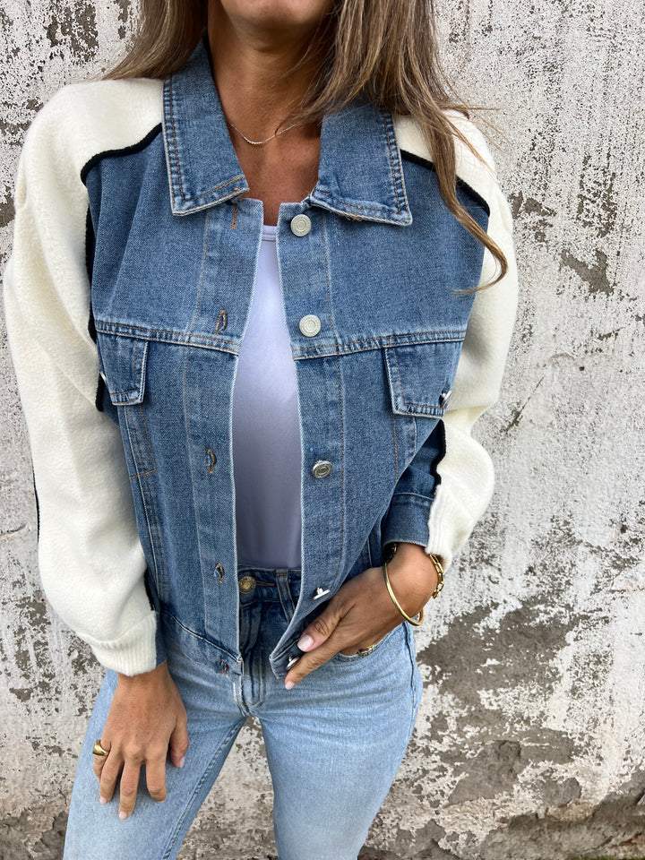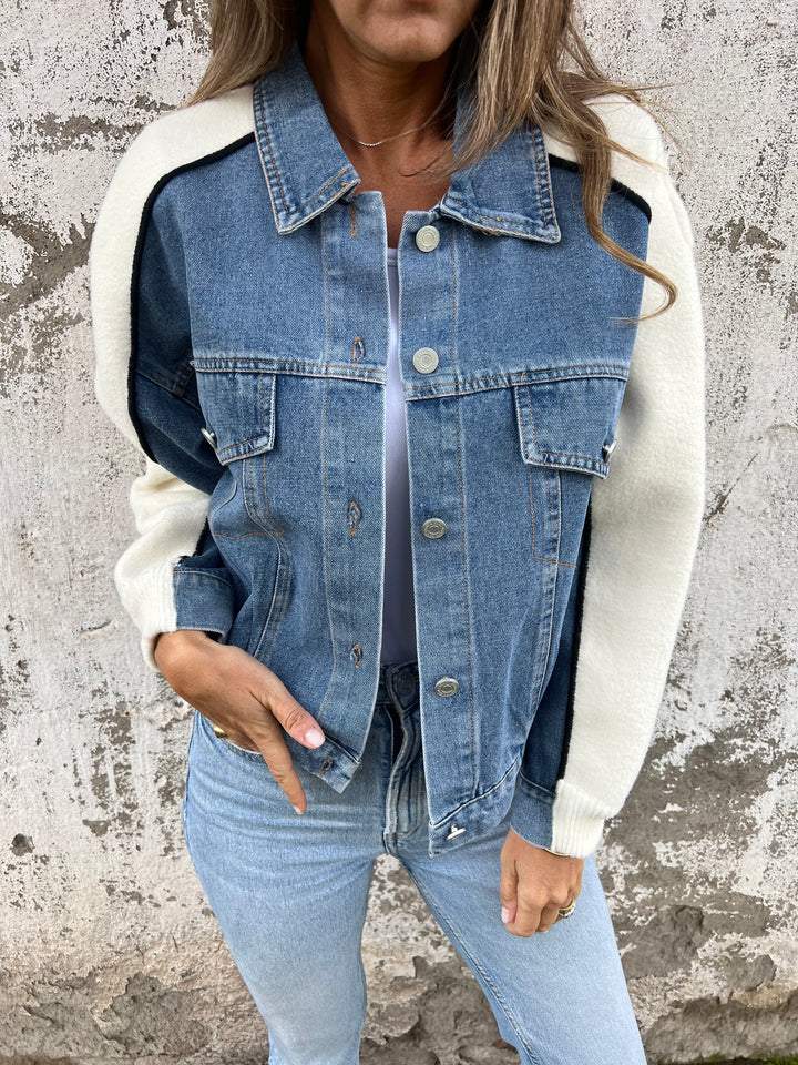 Women's Lapel Long-sleeved Denim Patchwork Jacket
