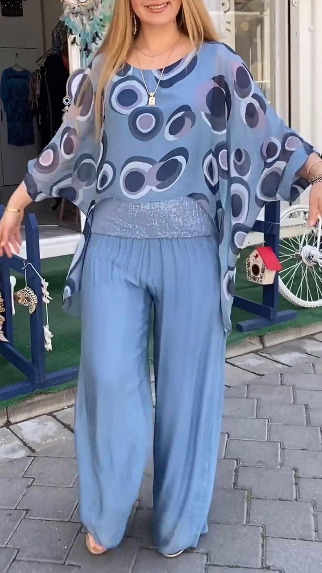 Women's Round Neck Long Sleeve Printed Casual Suit