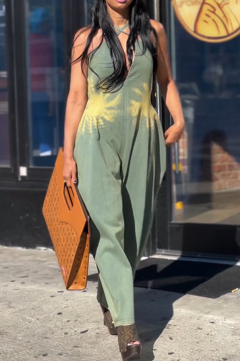 Women's V-neck Cap Sleeve Printed Jumpsuit