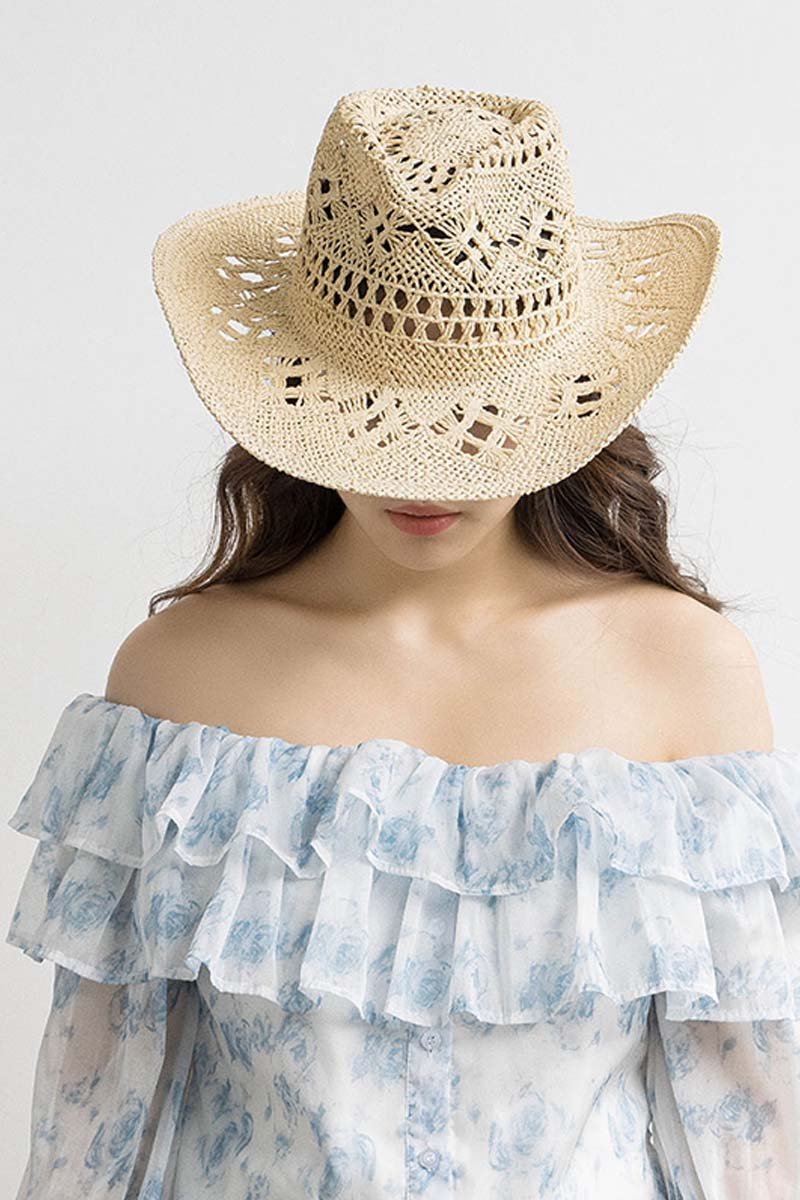 • Fashionable and casual hollow hand-woven papyrus wide brim woven hat