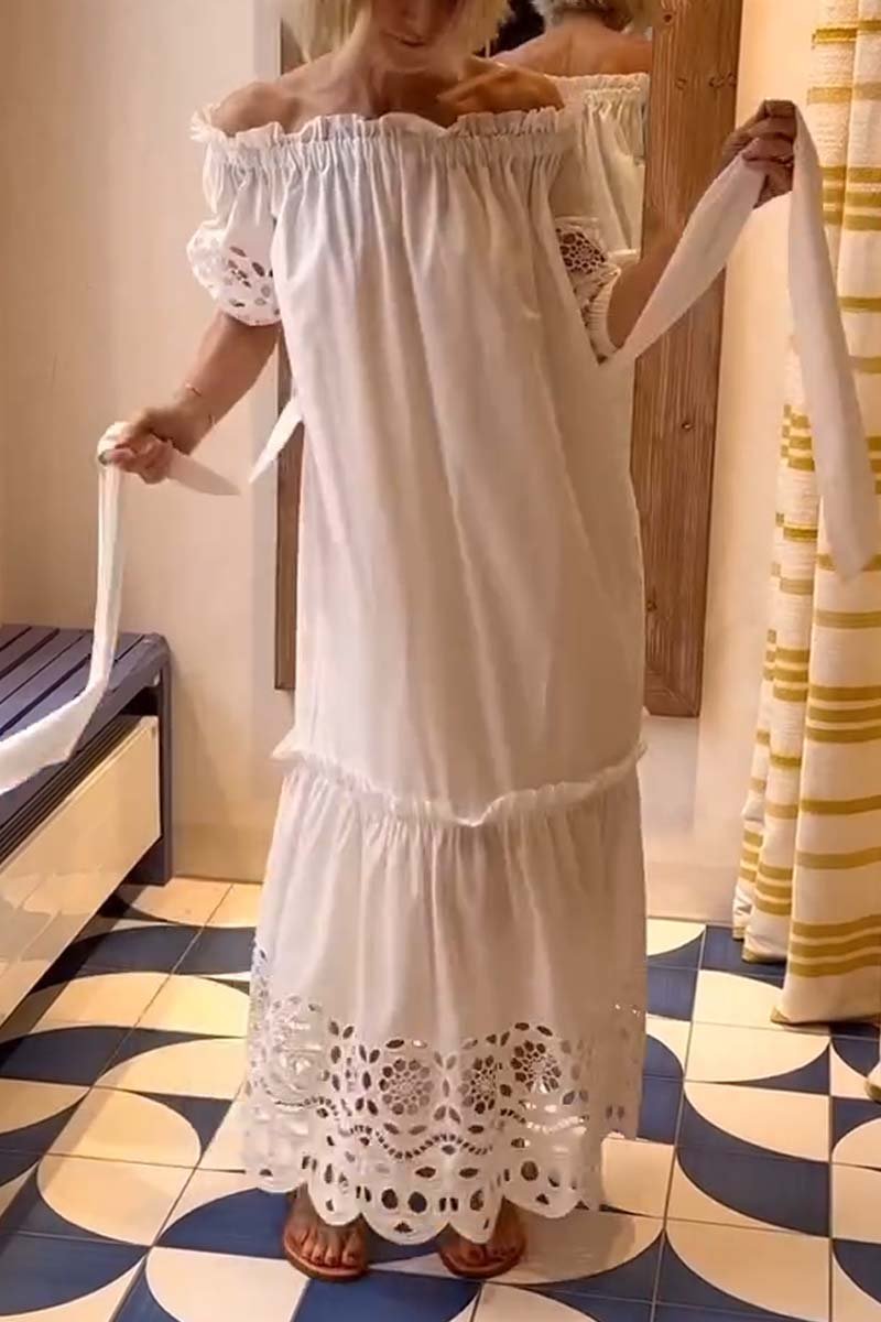 Women's off-shoulder lace-up cutout lace patchwork dress
