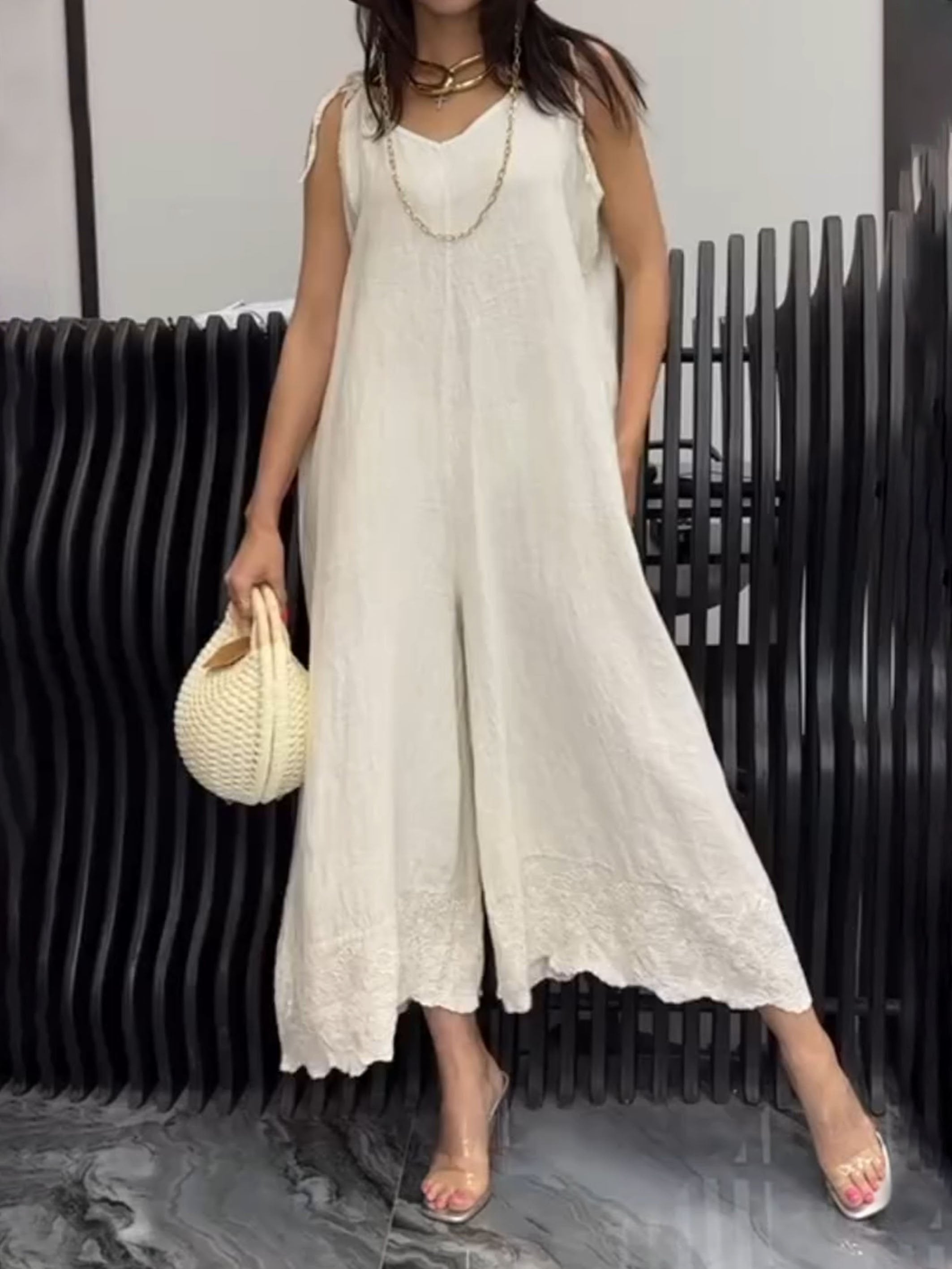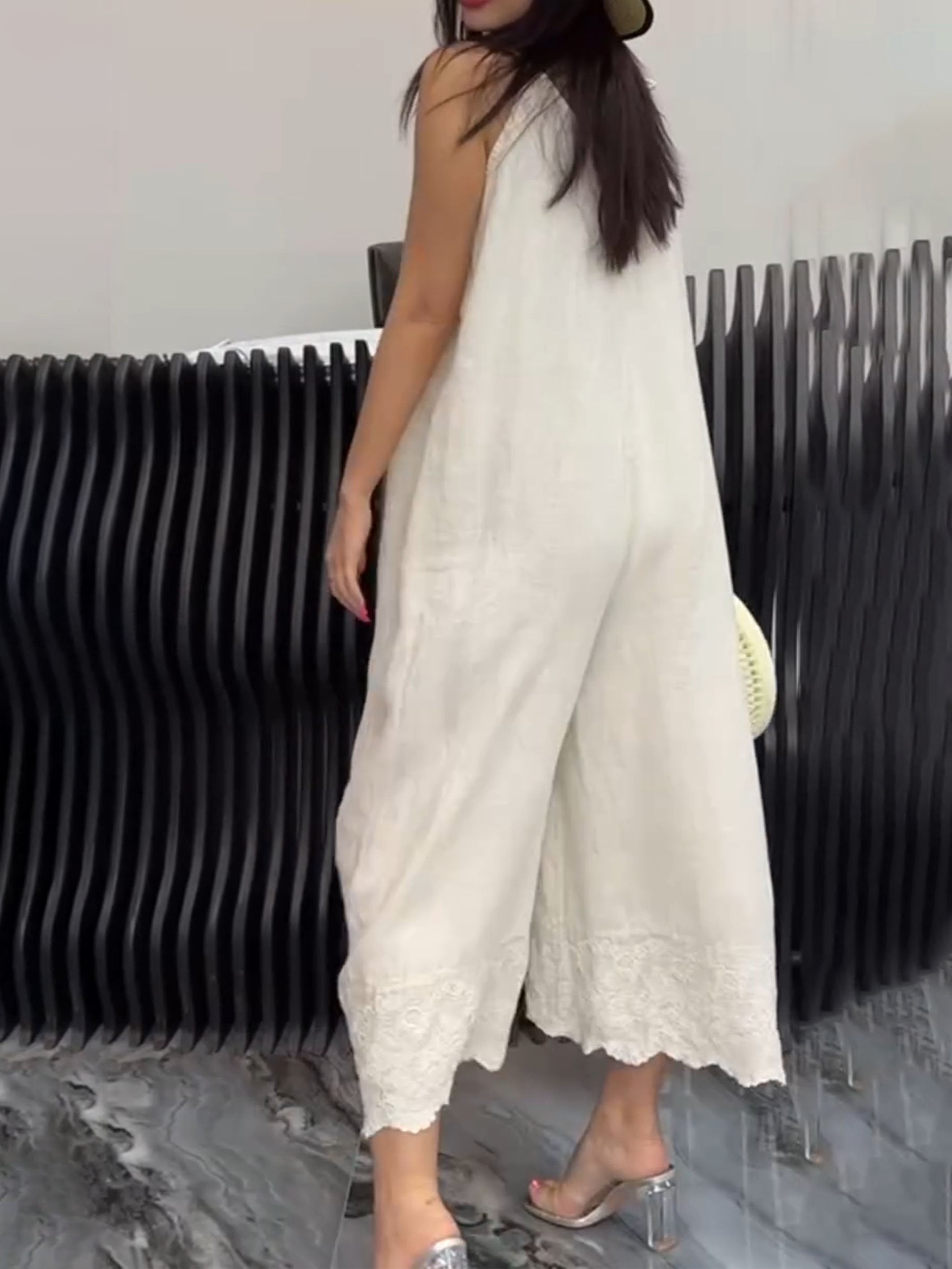 Cotton and Linen Hollow Leg Jumpsuit