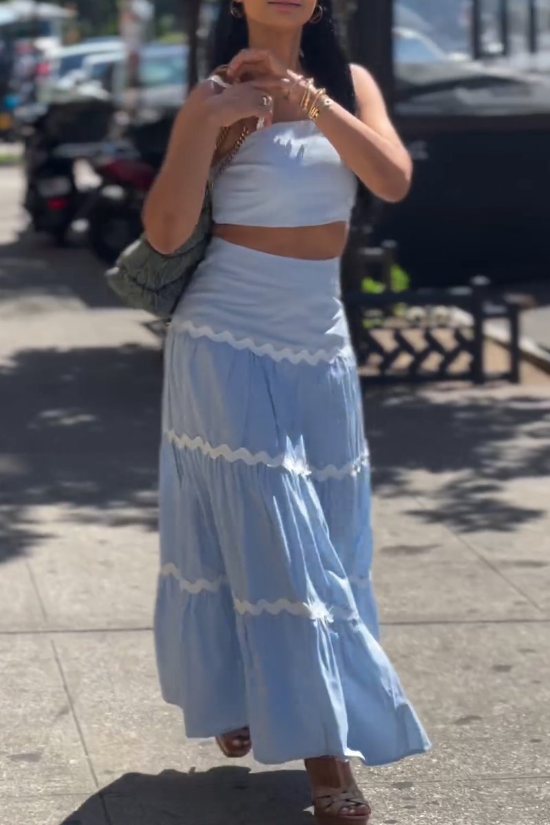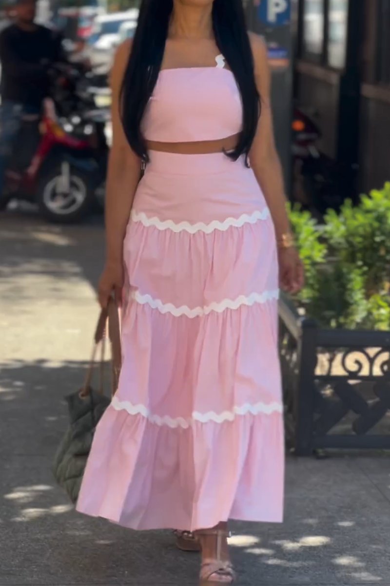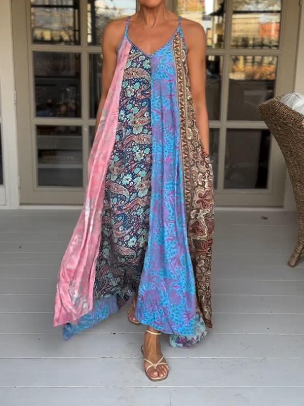 Casual V-neck Color Block Printed Suspender Dress
