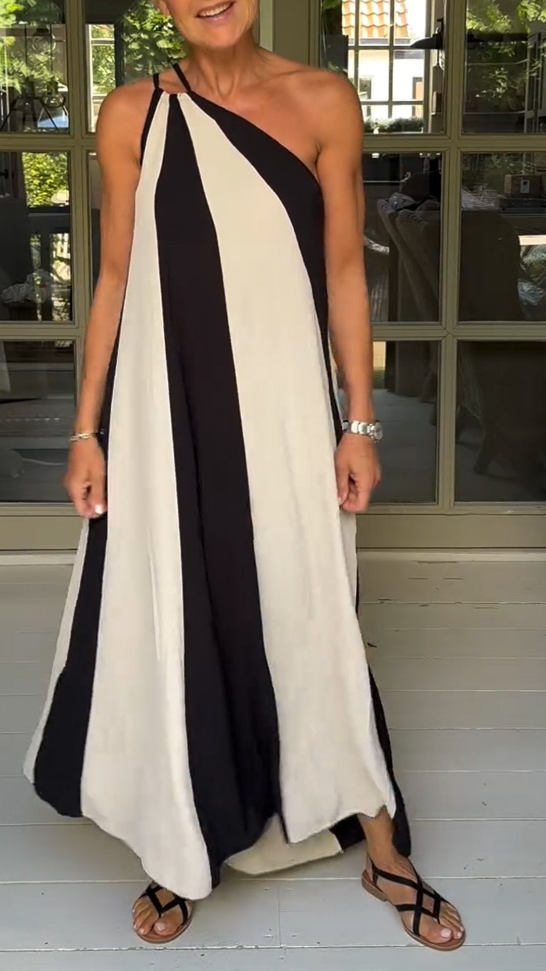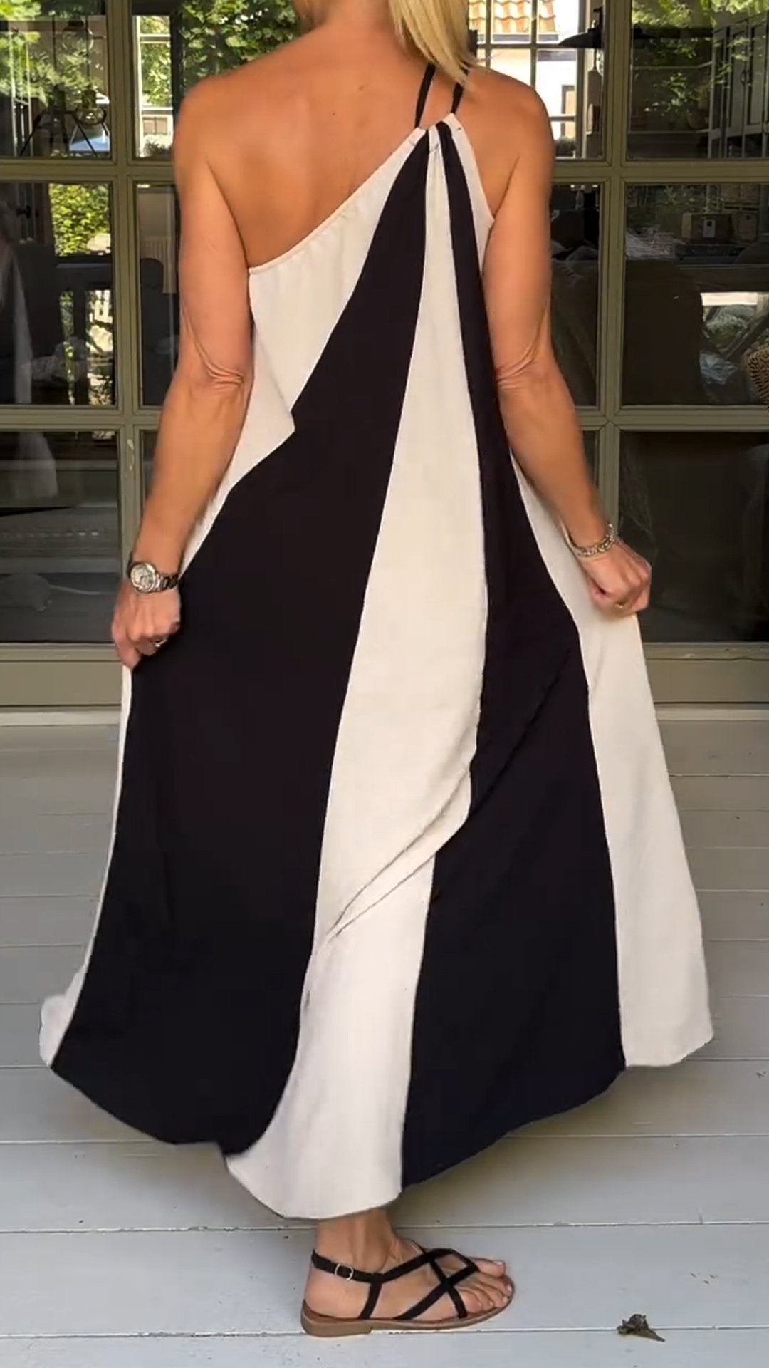 Women's One Shoulder Sleeveless Contrast Color Dress