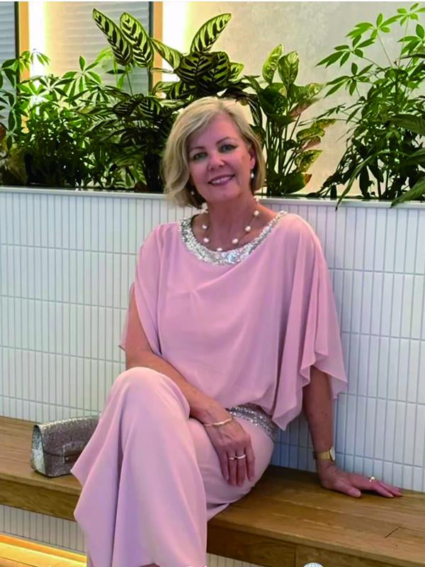 Women's chiffon sequin patchwork suit