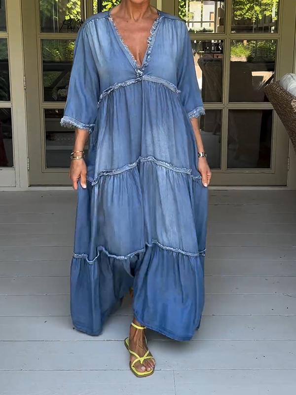 Casual cotton and linen slit gradient tie-dye long dress