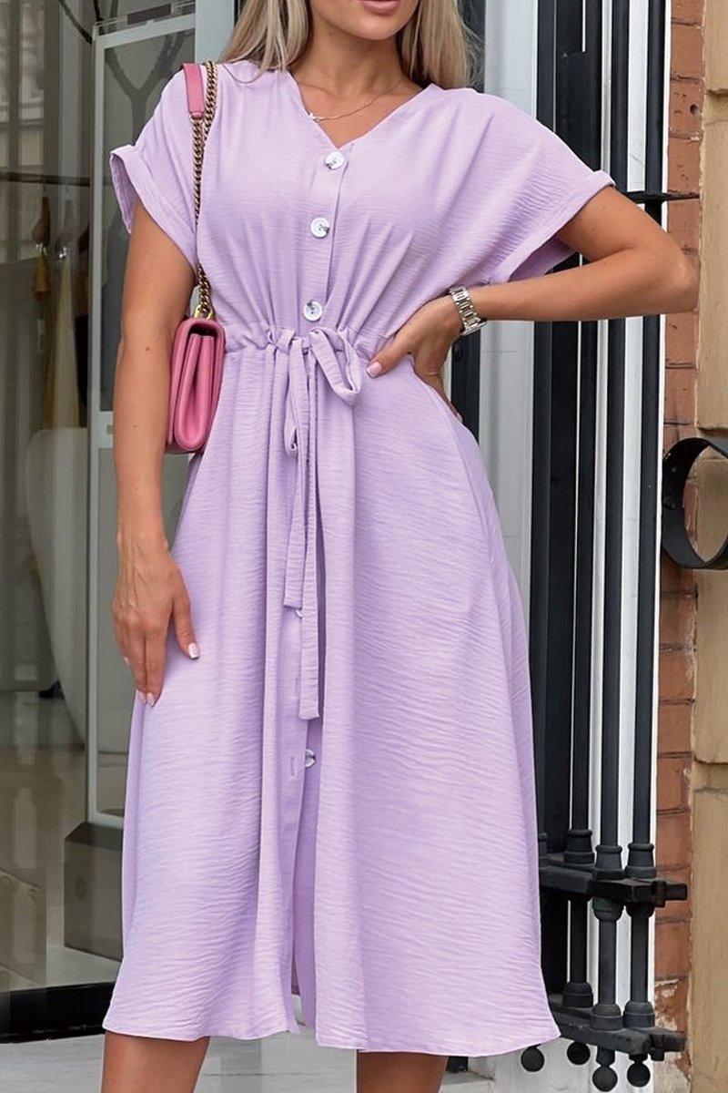 Women's Solid V Neck Midi Dress