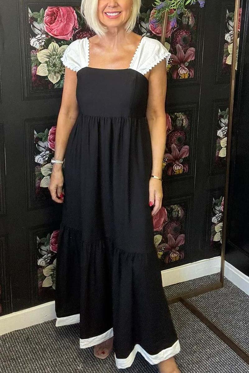 Women's Square Neck Solid Color Suspender Dress