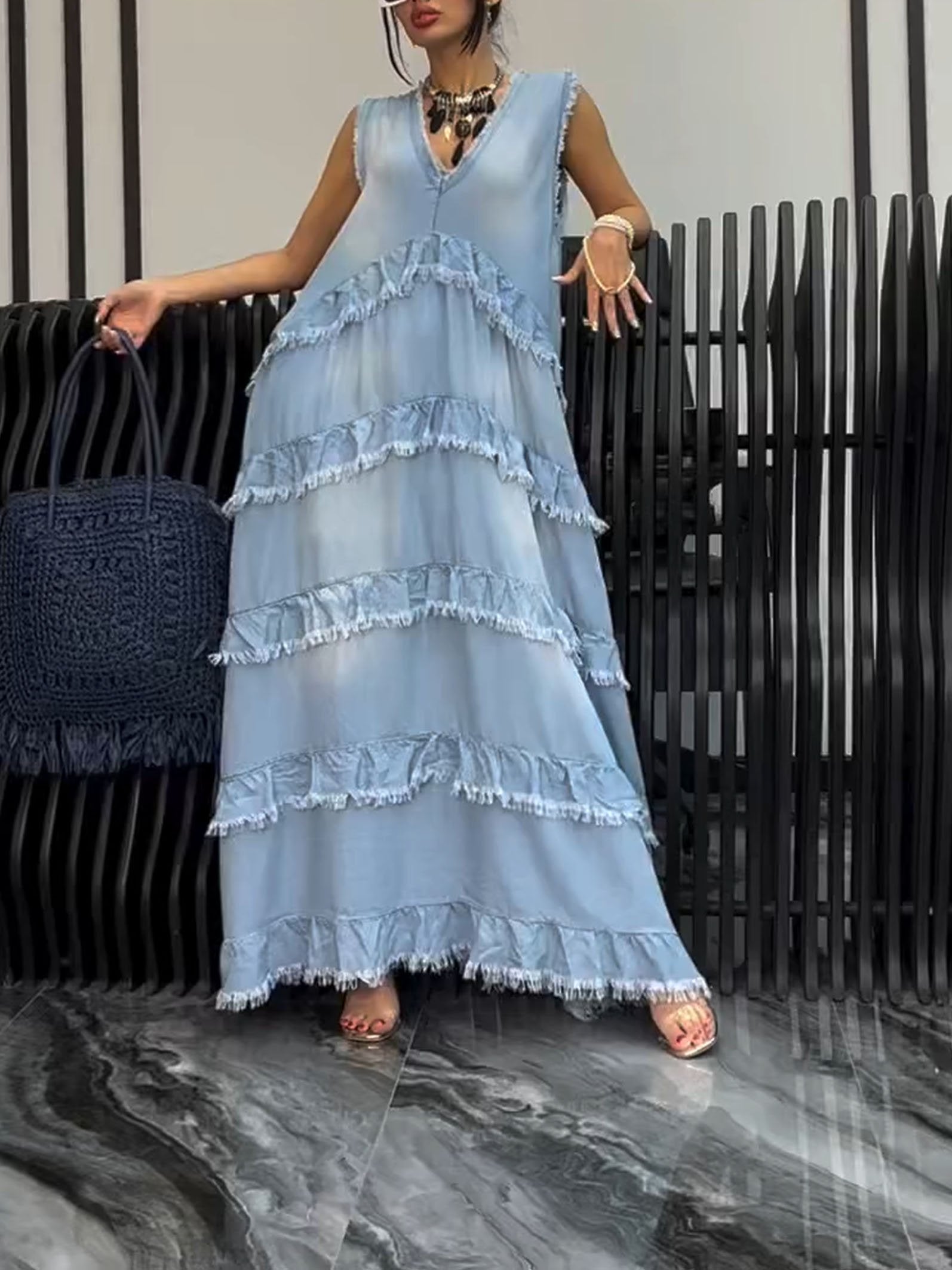 Women's V-neck Sleeveless Dress